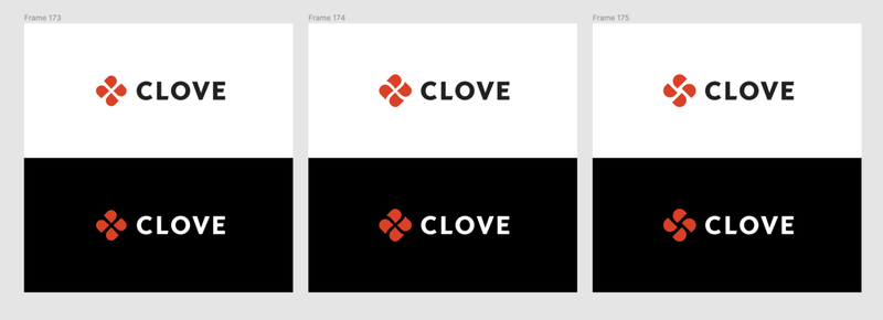 最終的に、ロゴタイプだけで見た時のバランスの良さも考慮して全て小文字の「clove」表記になりました。「Clove」だと右肩下がりのアンバランスな見た目になってしまい却下。「CLOVE」ではその問題は解決されますが、①シンボルに対してロゴタイプの主張が強くなってしまうこと、②「LOVE」という単語が悪目立ちしてしまうこと、の2つの懸念点があったため却下となりました。