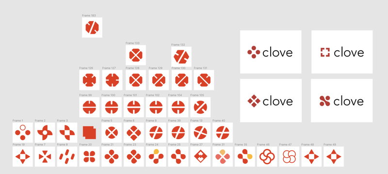 Cloveという単語は「クローバー(clover)」に由来し、既存のロゴは四葉のクローバーをモチーフにしています。すなわち上記でいう①のアプローチに当てはまりますが、おそらく現状のシンボル単体を見ただけでクローバーが由来だと分かる人は少ないでしょう。一方で、③のように単純化した形かと聞かれると、丸や四角といった単純な形で作られている訳ではないため、記憶に残りづらいような気がします。
