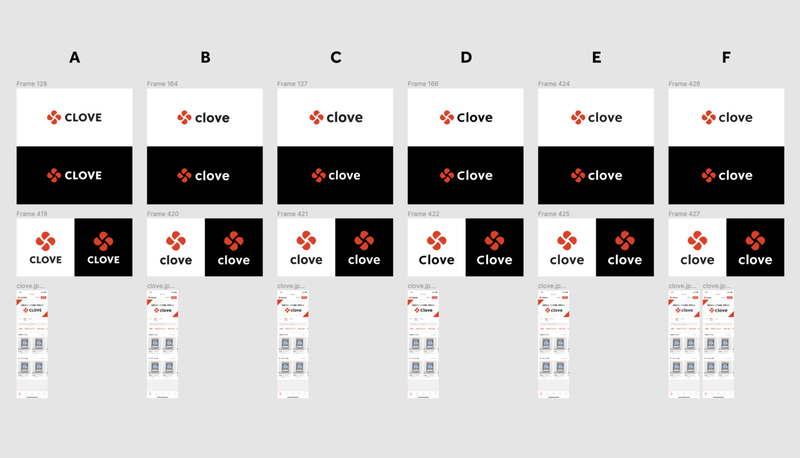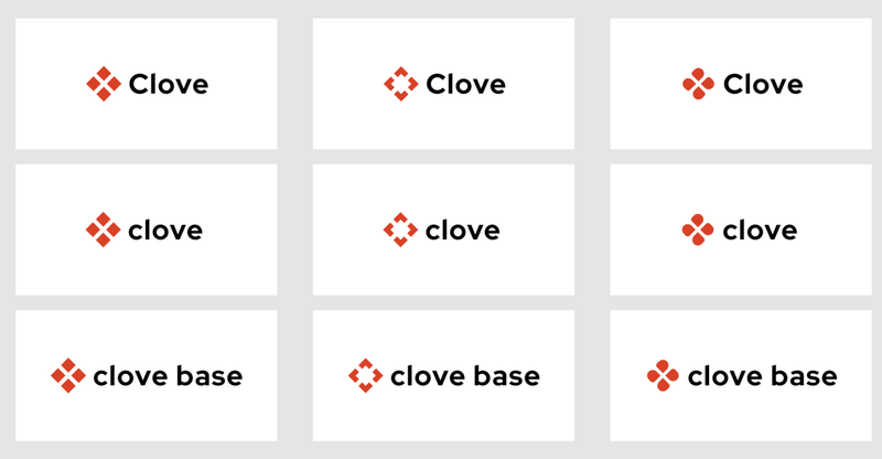 2に関しては、現状のロゴタイプはベースがオリジナルかつ特徴的な形であり、Clove〇〇といったロゴ展開をしたい時に既存のロゴタイプに合わせて文字を一から作る必要があります。今回のリニューアルでは既存フォントをベースとした汎用性の高いロゴタイプにすることを目指しました。