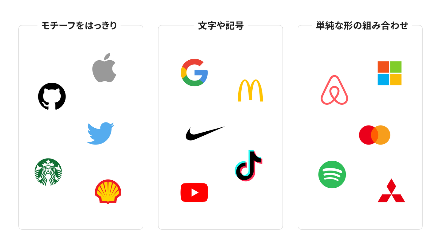 ロゴはブランドを象徴する意匠であり、ロゴを通して自分のブランドを記憶・想起させる目的があります。そのためにデザイナーは色や形に工夫を凝らしているのですが、シンボルに関していうと、以下の3つのアプローチで人の記憶に残すことができると僕は考えています。