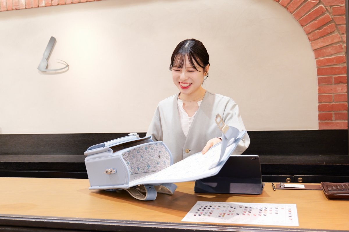 ランドセルの販売スタッフは、お子さまが初めて自分で選ぶお買いものに携わることができる、特別な仕事。ご家族ごとにストーリーもさまざまで、ひとつとして同じ接客はありません。