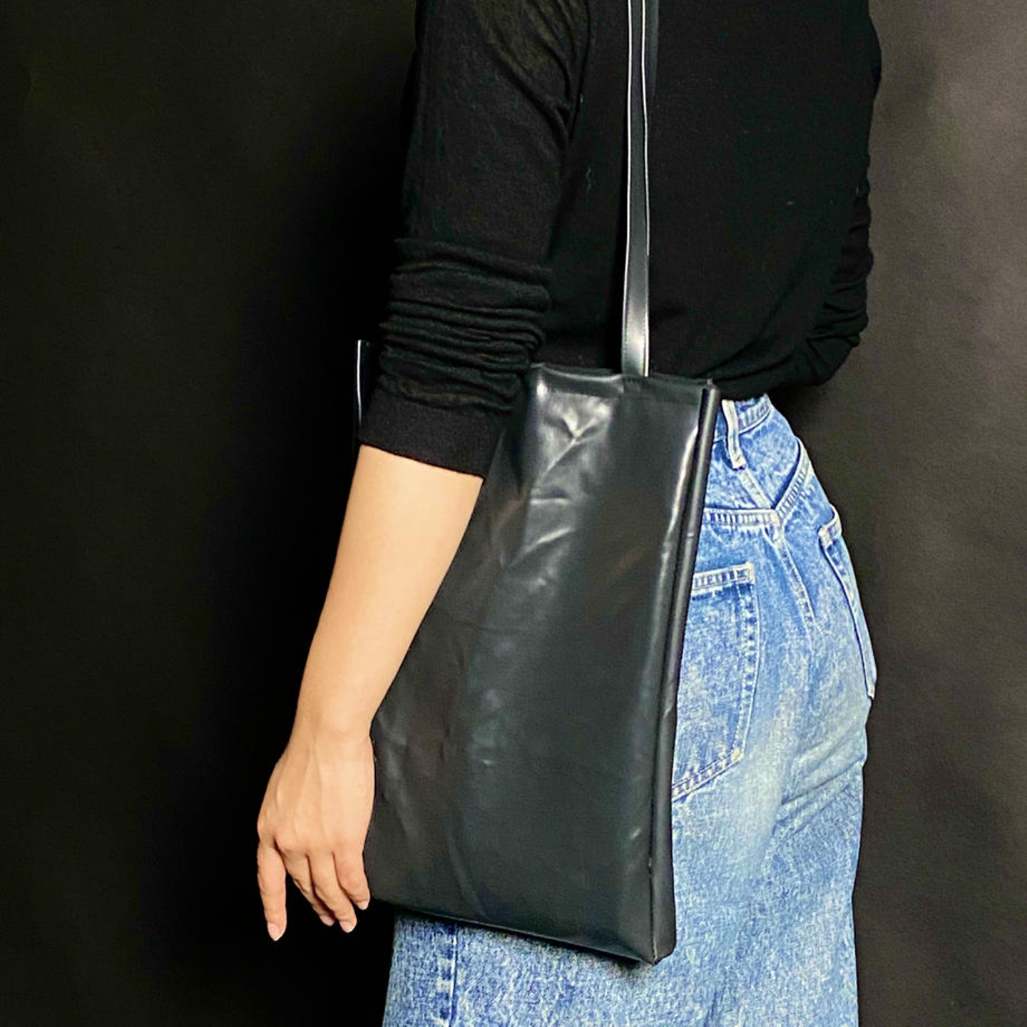 (ゴムボートの廃材でつくったトートバッグ)