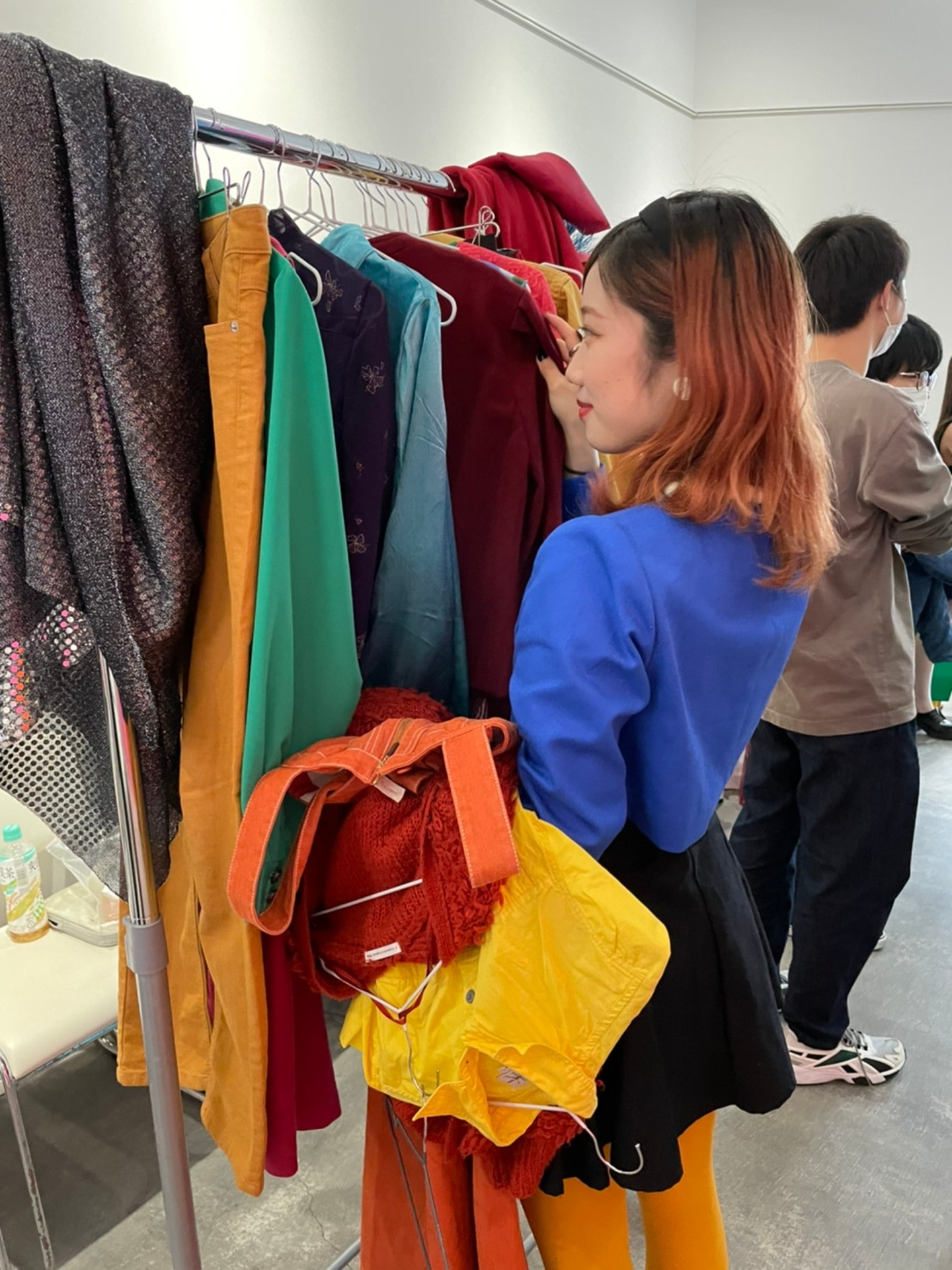 高校時代には、ミシンを独学で勉強して祖母の浴衣や父親のシャツをリメイクするようになり、大学で服飾サークルに入ってからは自分でデザインした服もつくるようになりました。服だけではなく、ファッションショーの空間も大好きだったので、引退前最後のショーで総責任者を務めたのも特に思い出深い経験です!テーマの起案から、ポスター制作、音響の手配、場所のセッティングまでを自分たちで行ったのですが、京都国立博物館の正門前にて、ドラム生演奏×ファッションショーというこれまでに無い新しい企画を成功させることができました。実は、ドラムの生演奏はもう一つの所属先である軽音サークルのつながりで実現したこと。大好きなファッションと音楽が自分の大切な人でつながった、そんな喜びをしみじみ感じる経験でもありました。