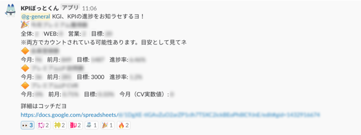 それを活用して、集計した数値を毎日定時にスラックに流しています。