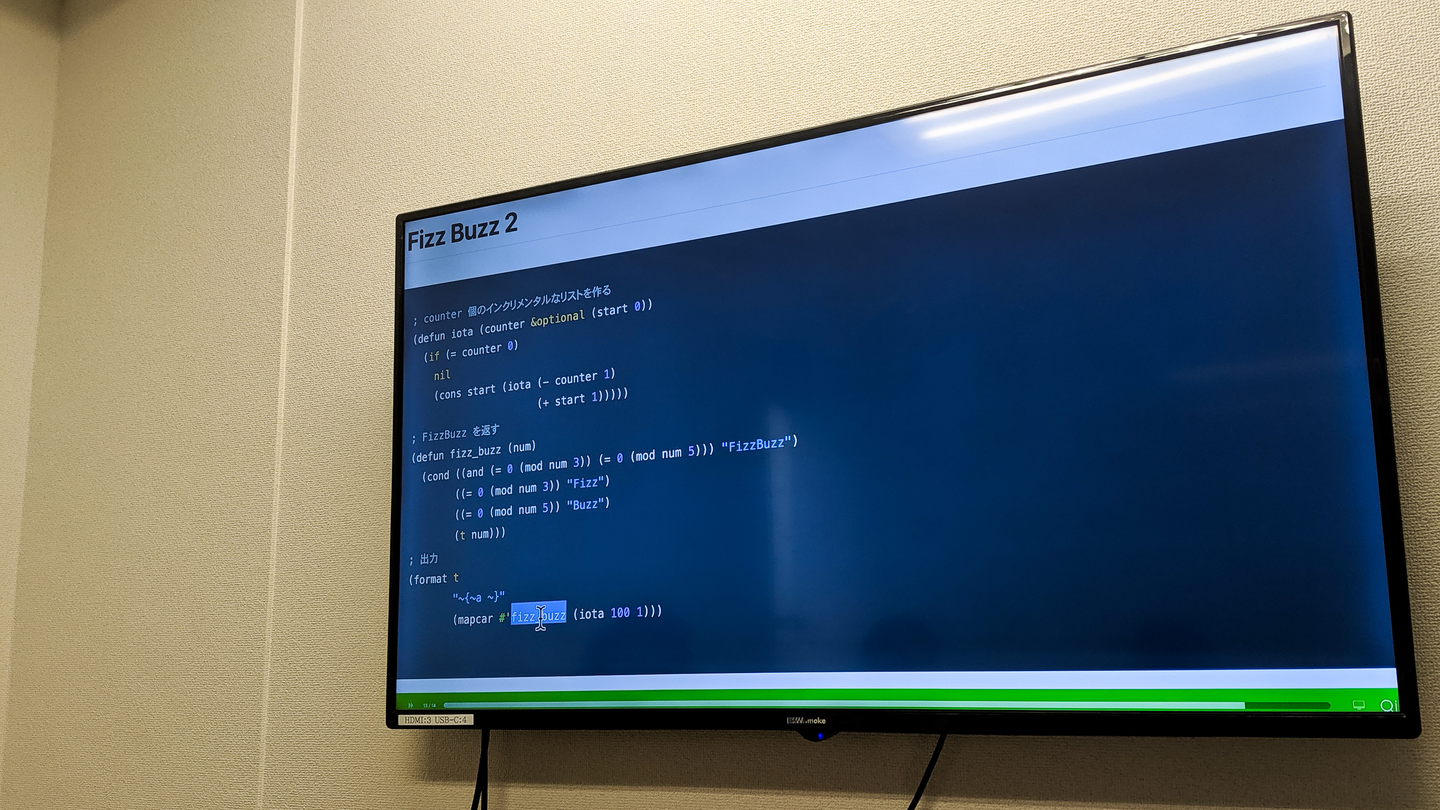 持ち時間10分で環境の作り方からFizzBuzzの実装までを解説していきました。