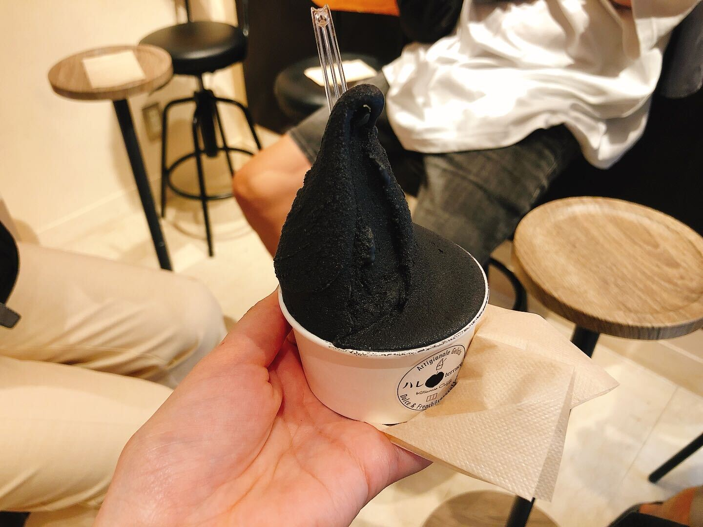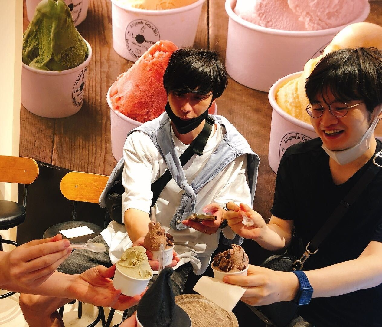 本間さんは濃厚黒ごまジェラートをチョイスです!中村さんと長谷川さんはお揃いの味をチョイス