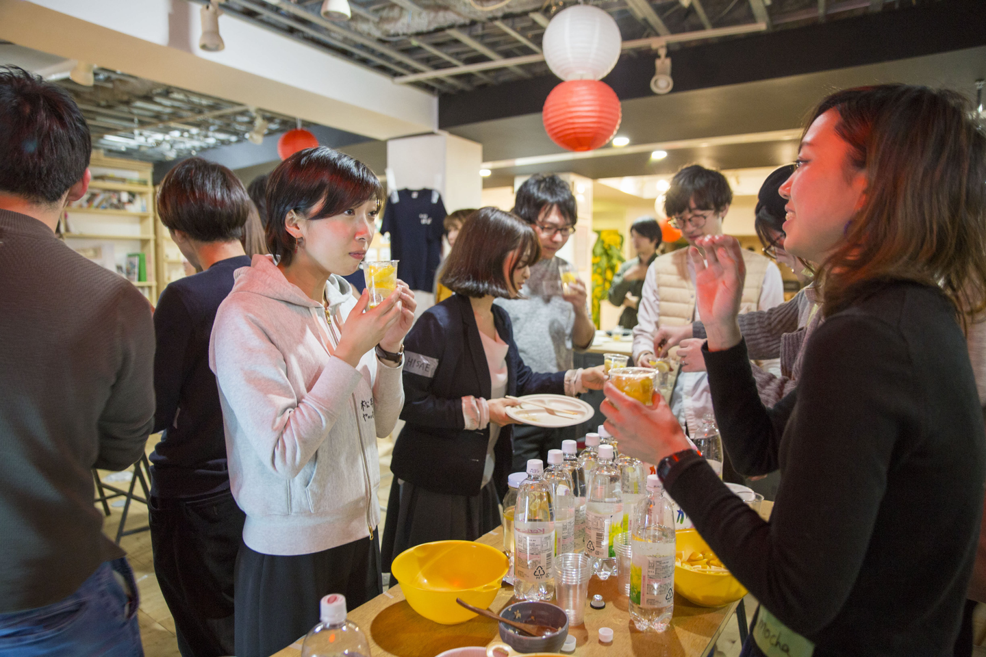 △オープンオフィスイベントの様子。ツクルバでは、採用の候補者やメンバーの友人などを招いたオープンオフィスイベントを定期的に開催しており、社外の方にツクルバで働く魅力を伝える機会となっている。イベントの場で多くのメンバーとフランクに話すことで、面接だけでは伝わらない普段の雰囲気や、メンバーの想いを深く知ることができた。