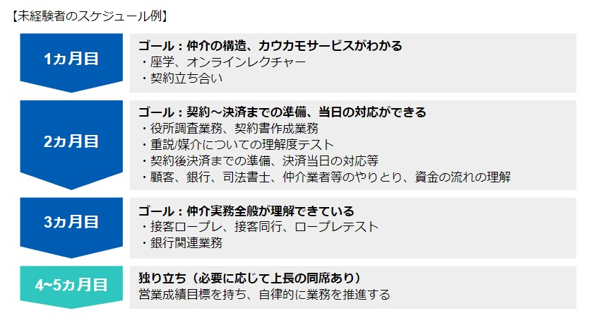 - 3ヶ月目 ゴール:仲介実務全般が理解できている