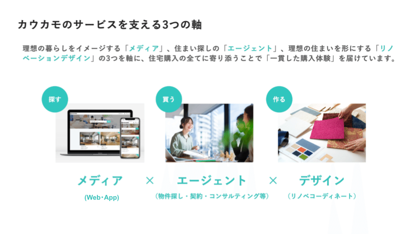 では、カウカモはこの「一貫した住宅購入体験」をどのように実現しているのでしょうか?