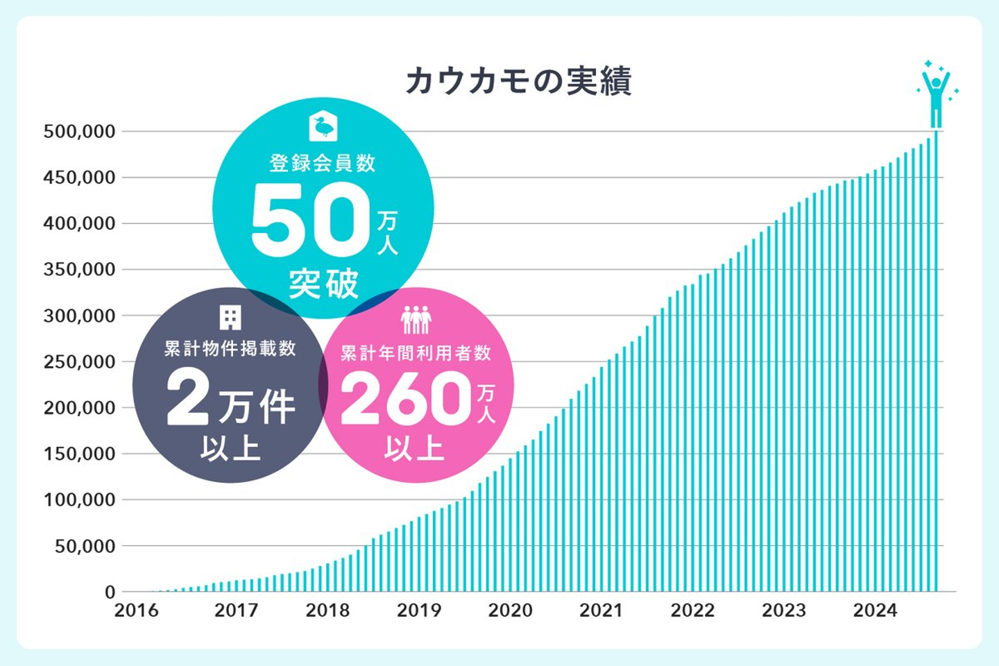急速に増加する中古物件の活用が社会的に求められる中、魅力あるリノベーション物件の価値が認められないことに問題を感じた創業者は、中古・リノベーション物件の魅力やこだわりを伝え、適正な価格で物件を売買することができる不動産メディア「カウカモ」をスタートしました。