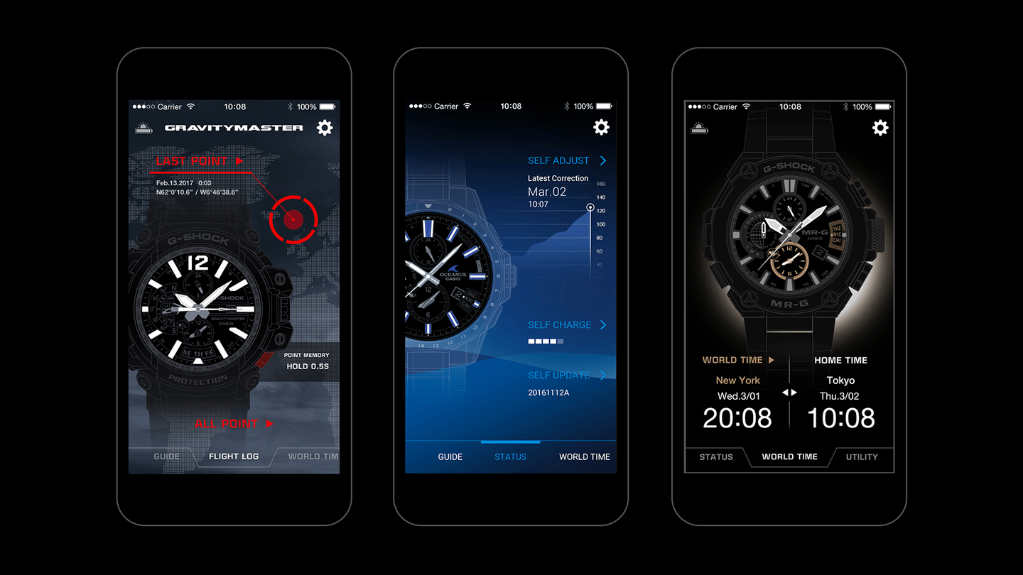 G-SHOCK Connected、OCEANUS Connected、MR-G Connectedの各アプリのUIデザインを、