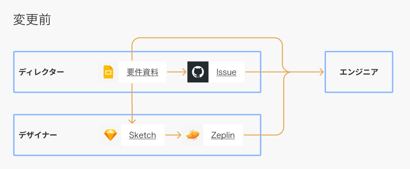 デザイナーがSketchでUIをつくりZeplinで書き出したURLをエンジニアに受け渡し、エンジニアはGithub Issueと要件資料とZeplinを元に開発を行っていました。