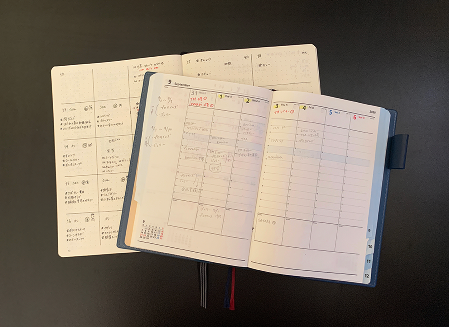 (手前が最近愛用している手帳、奥がバレットジャーナル。)