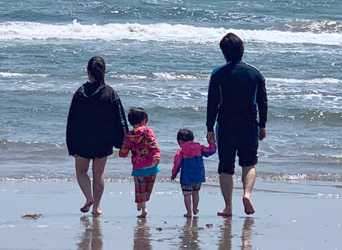 (堀江さんの撮影した、お子さんと旦那さまの後ろ姿。「そうそう、母って気がつくと写真にいないよねー!写すばっかりになっちゃって」と盛り上がる)
