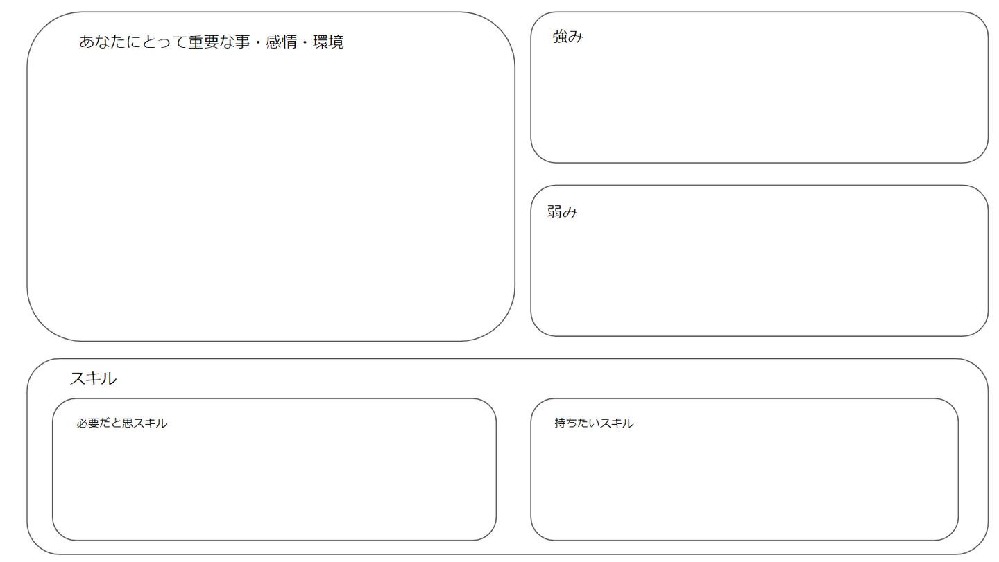 フレームワークとして下記のような観点で自分が吐き出した情報を元に埋めていく事で何となく自分のなりたい姿が見えてきます…!