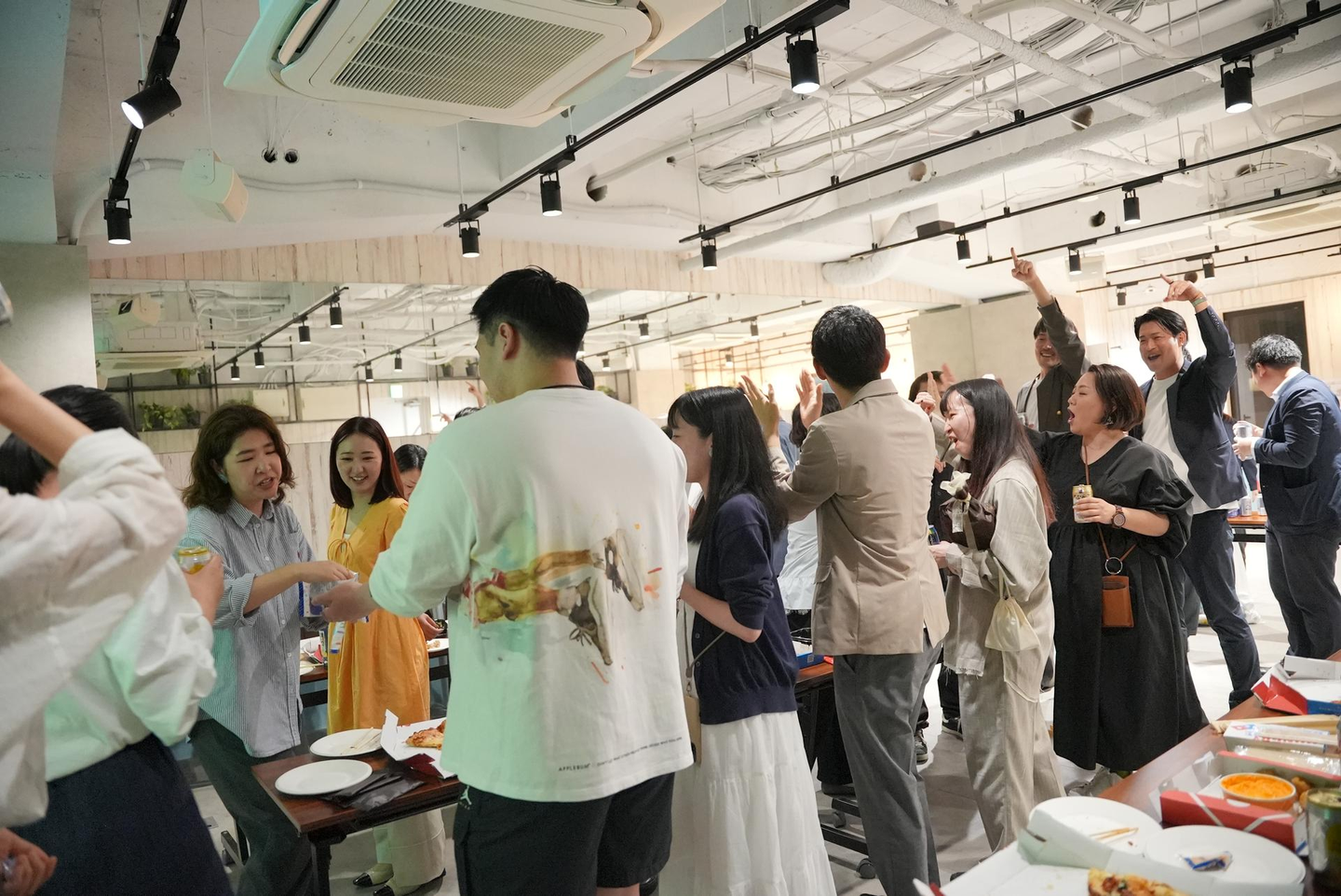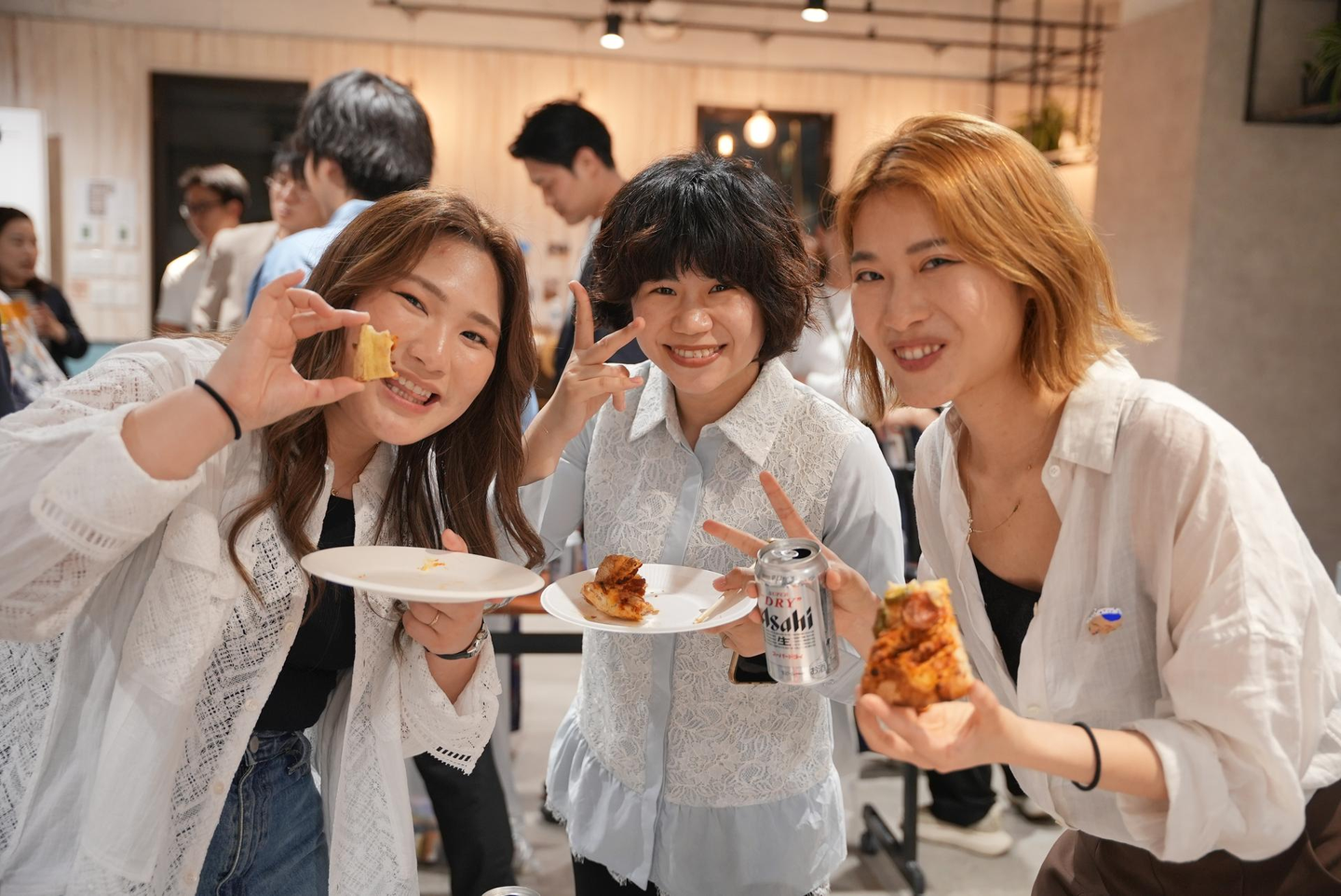 しっかりじっくり話を聞いた後はみんなでピザを片手に懇親会🍺!(もはやこれがメイン?)
