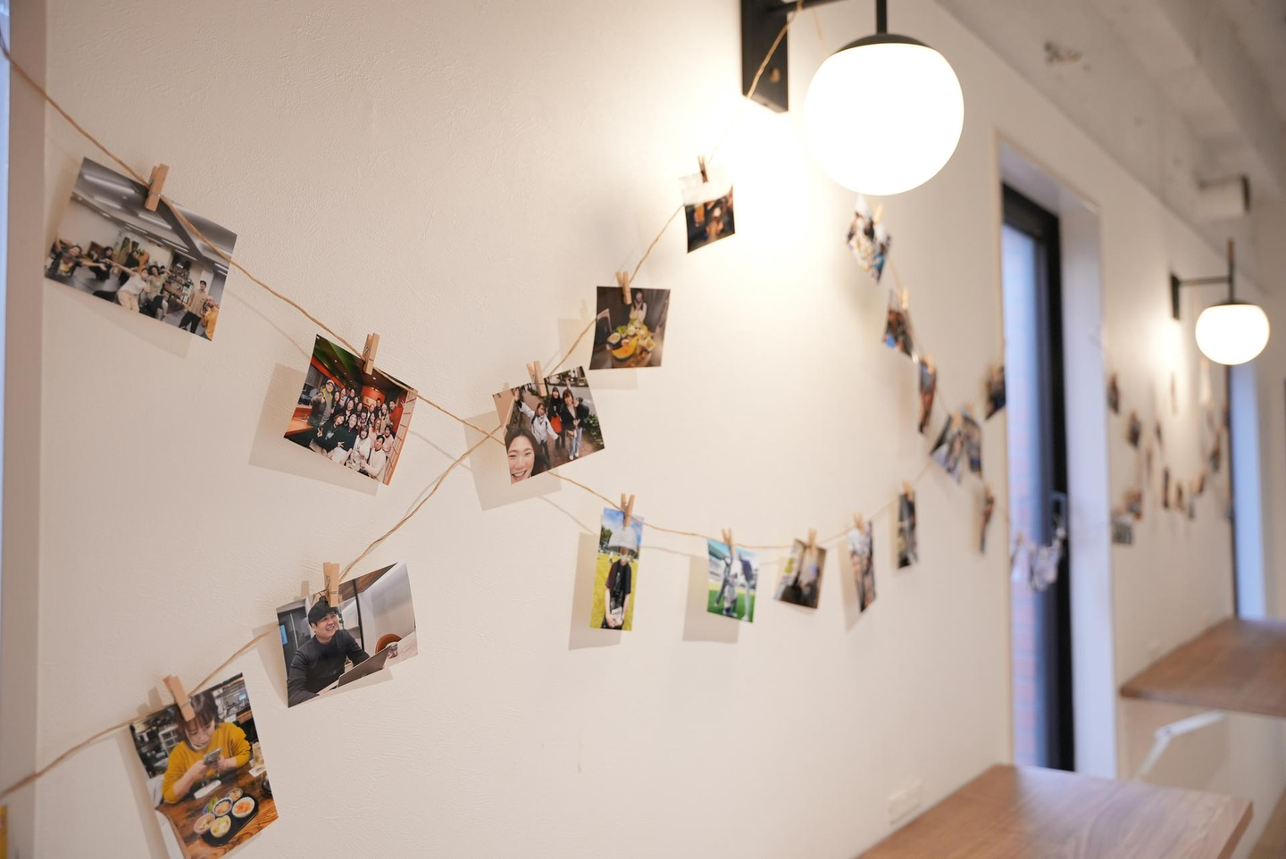 会場には業務での取材や社内インタビュー、飲み会等、昨年度の写真を集めて飾りました。待ち時間や懇親会の際にみんなで見ながら思い出に浸ったり、最後にはほしい写真をプレゼントし、大好評でした!