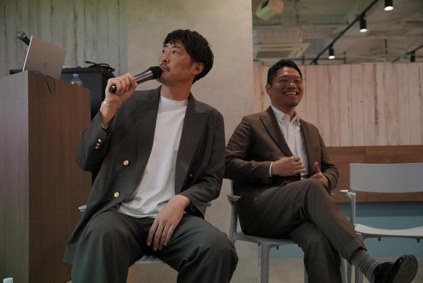 今期戦略の中では新体制も発表され、昇格した新たなリーダーたちからの挨拶もありました。こちらの写真はそれぞれ共創事業部と旅行事業部を引っ張っていってくれる、めちゃくちゃ頼もしいお二人です!