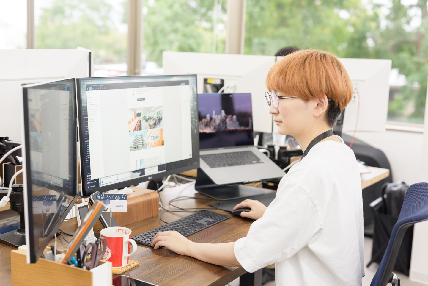 入社前に抱いていたWebデザイナーのイメージは、「いつも時間に追われていて、納品ギリギリまで作業をしている」というものでした。「新人が質問をして貴重な制作時間を奪ってしまうと怒られるのではないか」と心配していましたが、実際にはそのようなことはなく、嫌な顔一つせず応じてもらえました。