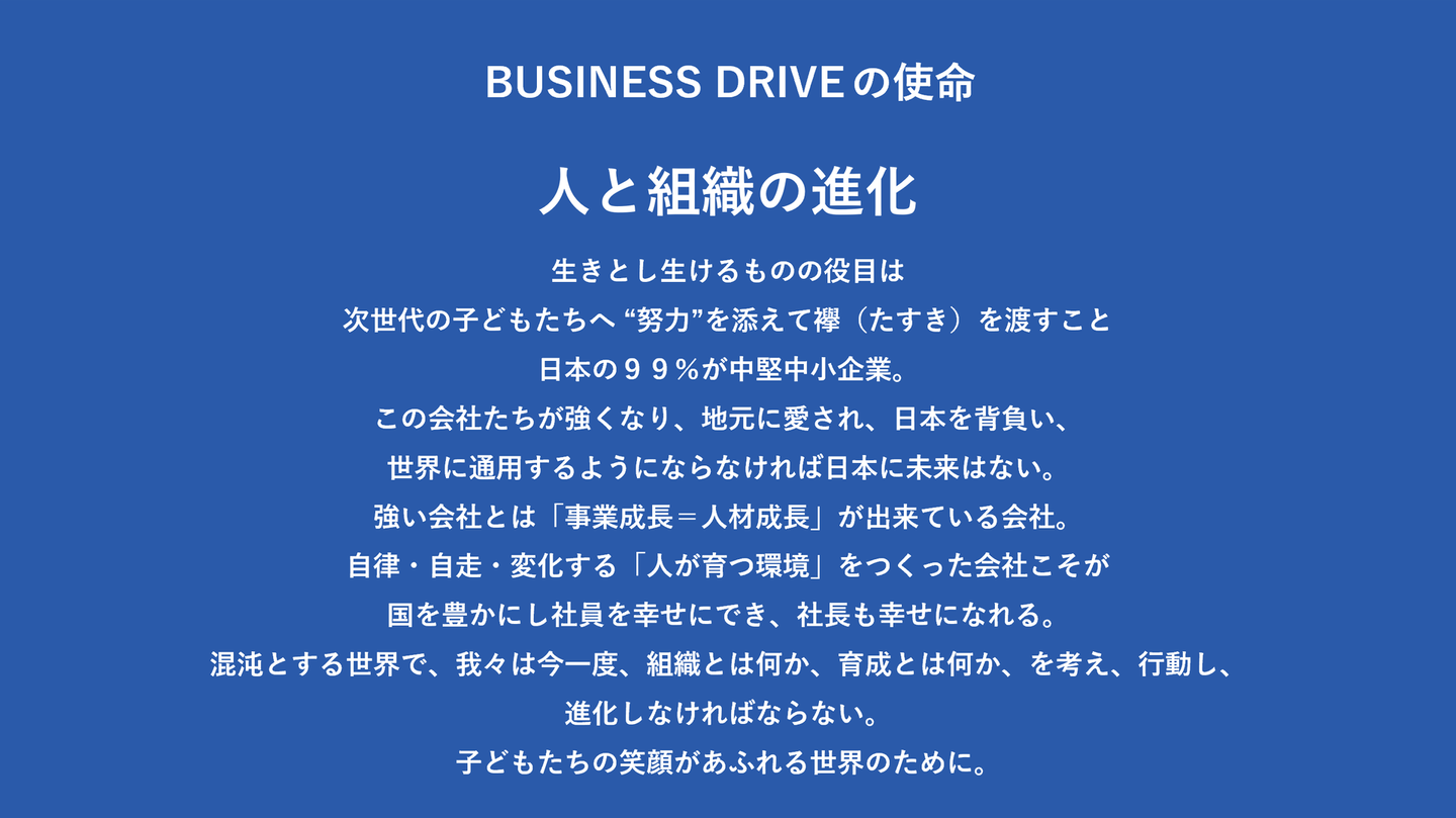 今日は、BUSINESS DRIVEが目指す世界観についてお伝えします。