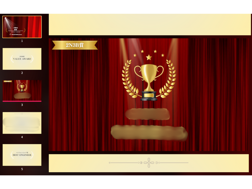 四半期表彰では、受賞者をスライドにまとめてグループ全体の連絡ツールSlackへ展開しています。
