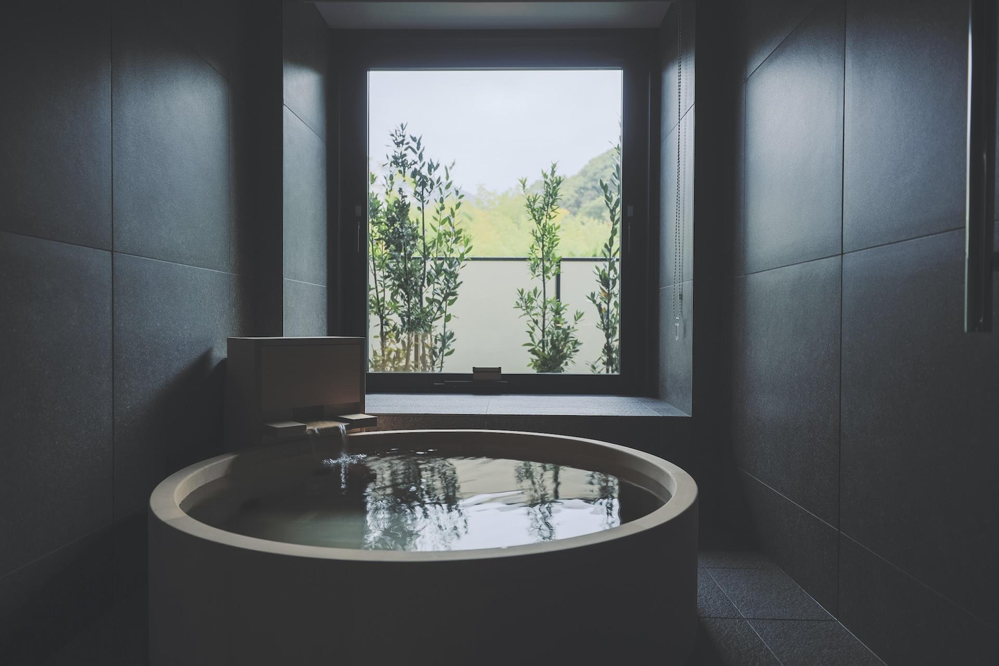 歴史的にも湯治場として栄えた熱海の原点に立ち返り、いつでも好きな時に湯浴みを楽しめるよう、全客室に温泉を引いています。また、地域の四季や風土を味わえるように、食事処では地域の旬の食材を使った料理が提供され、敷地内にはハーブや野菜、果実などが収穫できる「里庭」を設けています。