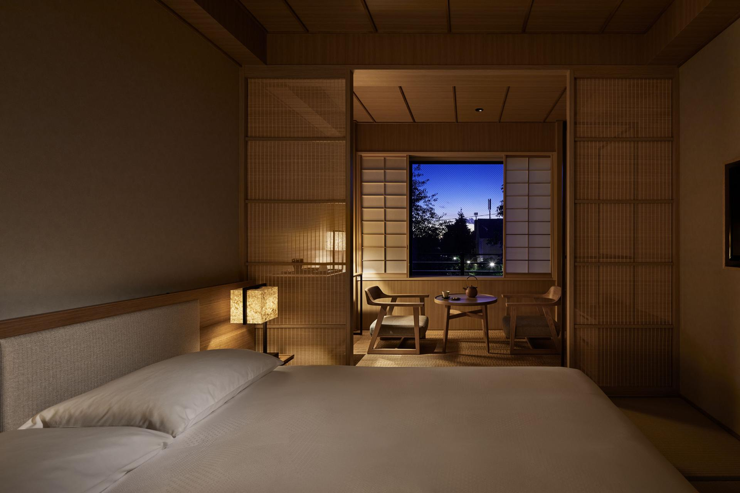 旅館の客室は一般的に40平米以上のところが多いですが、設計上の制限がある中で部屋の大きさをコンパクトに抑えました。その上で、客室から見える景色は全室異なるようにデザイン。土間があり板間があり広縁もある、旅館らしさを再編集した構成になっています。