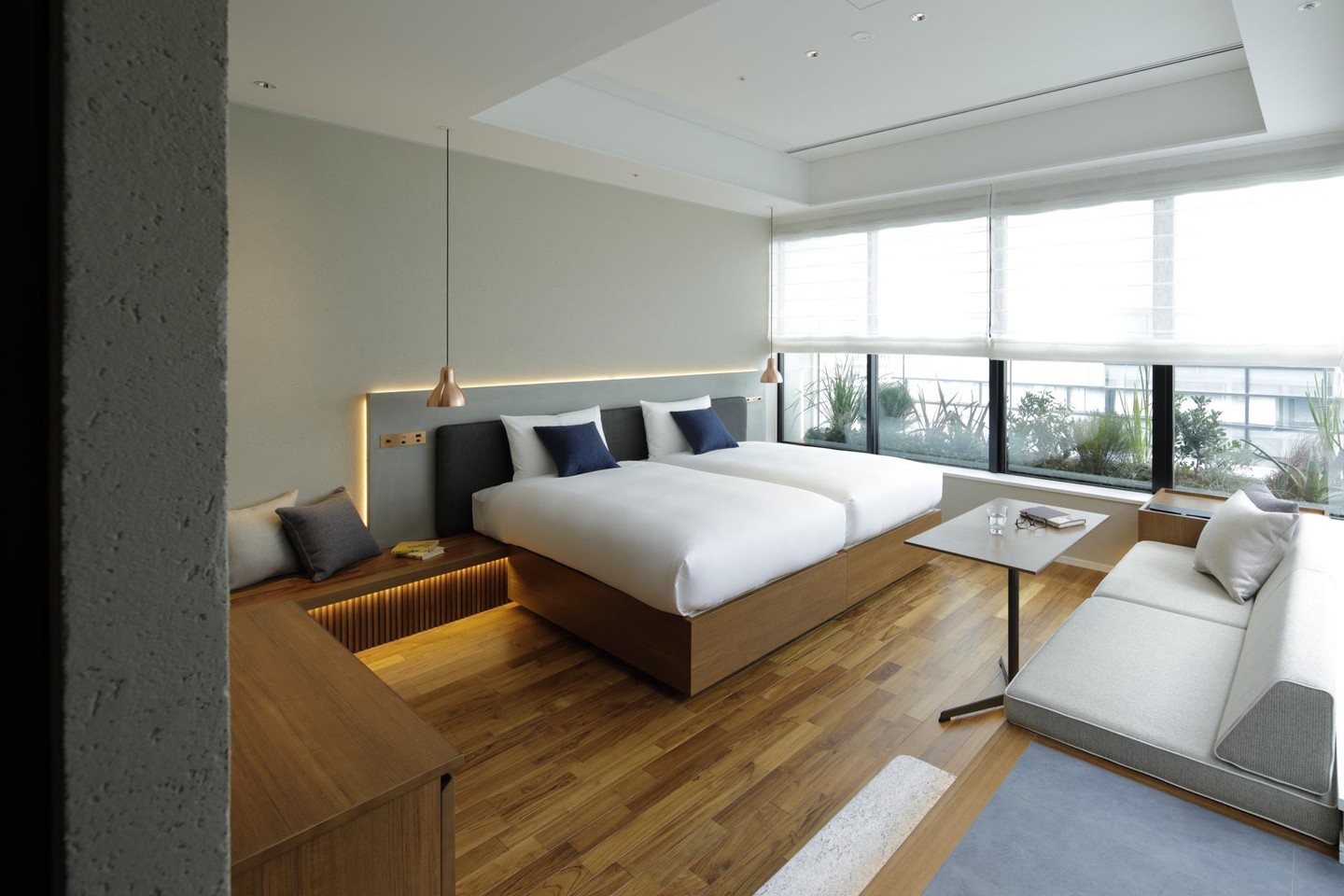 HAMACHO HOTELはこの施設のホテル部分となっていて、1階は様々な人が行き交う場所を目指し、ホテルのフロントを館内レストラン「HAMACHO DINING&BAR SESSiON」と自然に繋げ、オープンなスペースとしています。2階には、日本の手しごと(の技)を発信する場としてTOKYO CRAFT ROOMを計画。2階以上は、客室となっています。3階以上は、客室となっています。