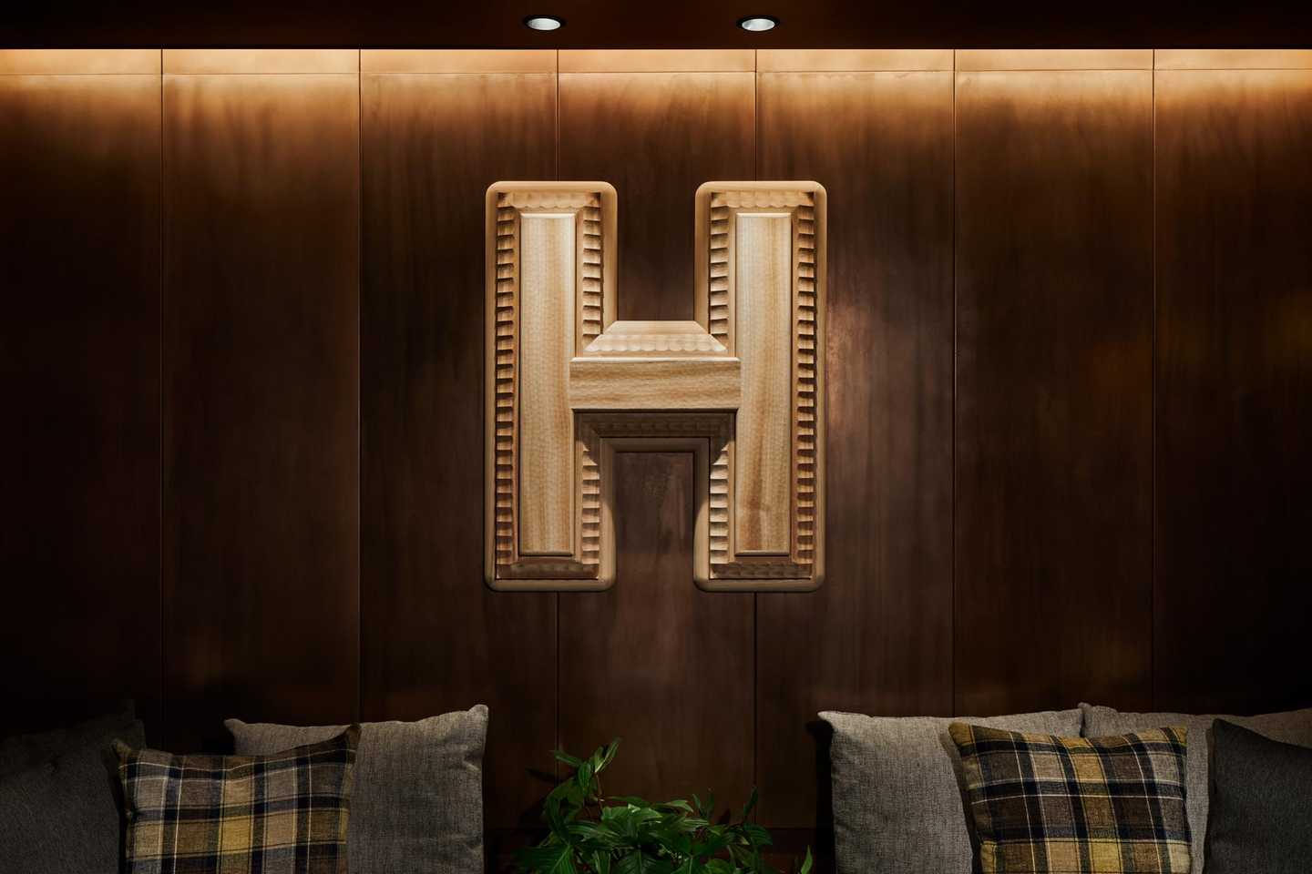 「HAMACHO HOTEL」のロゴを制作したのは、日本を代表するグラフィックデザイナーの佐藤卓氏。 象徴的な「H」は、HAMACHOの頭文字のほかに、HUB、 HUMAN、HOSPITALITY、HANDMADE、HARMONY、HAPPYと7つのキーワードが込められています。