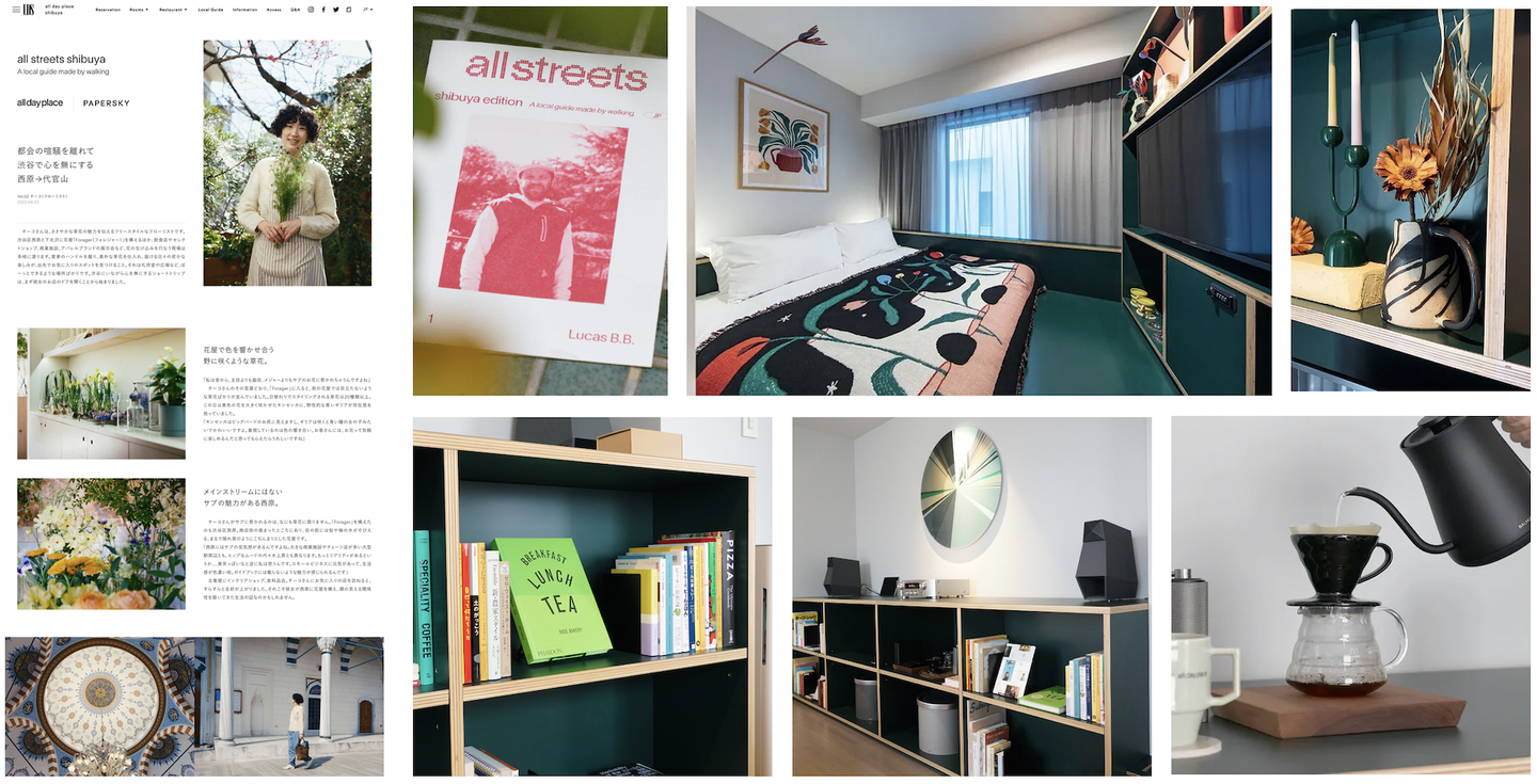 そのほかにも、まちの日常を旅人に伝える取り組みとして、ホテルが独自に編集しているローカルガイドメディア「ALL STREETS -shibuya-」を発行。20年以上、渋谷を拠点に「PAPERSKY」などのメディア制作を行うルーカス B.B.氏を編集パートナーに迎え、実際に渋谷を拠点に活動するクリエイターの方々のリアルな日常の風景の中にあるお店を紹介しています。