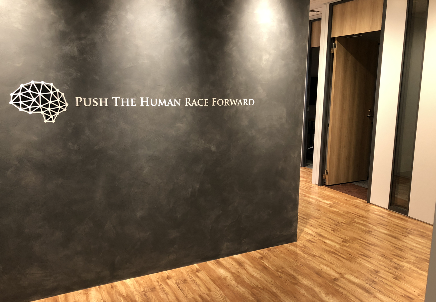 今回はもともと借りているフロアの開いている部分を貸し切る形の増床のため、エントランスが2つできました。増床部分のエントランスには、UEIとギリアのミッションである「人類を前進させる(Push The Human Race Forward)」が掲げられています。