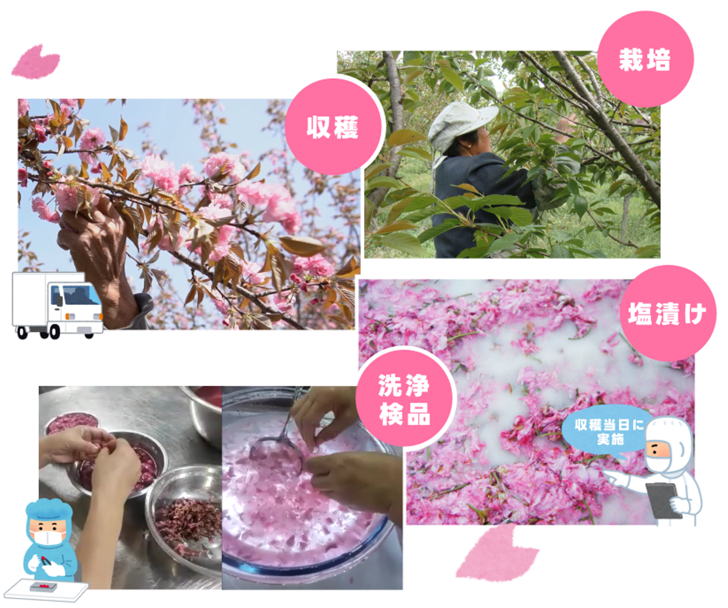 こうして食用のさくらとして市場に流通していき、様々な商品に変化していきます🌸