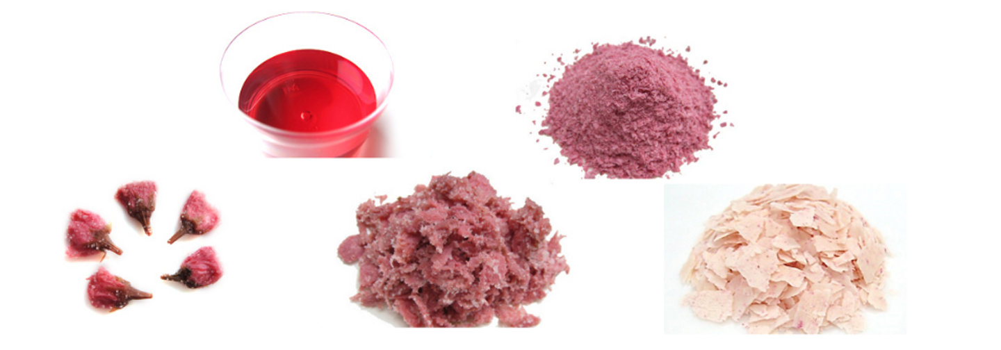 収穫後は花の形を残したものやパウダー、エキスなどに加工され