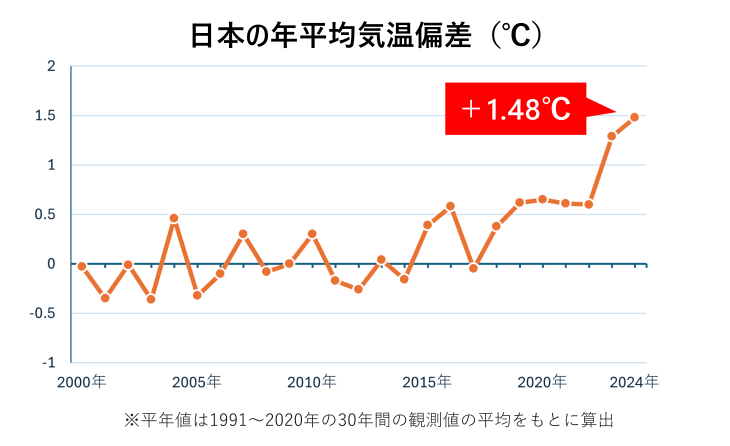 出典:気象庁 | 日本の年平均気温偏差(℃)