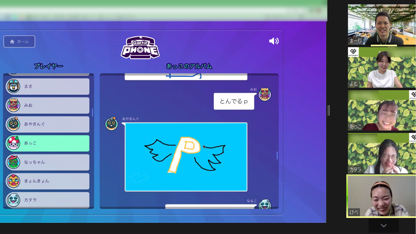 まずは、座談会で質問をする前に場をあたためようと、まーりさんの計らいで「Gartic Phone – 伝言ゲーム」というレクリエーションを行いました。