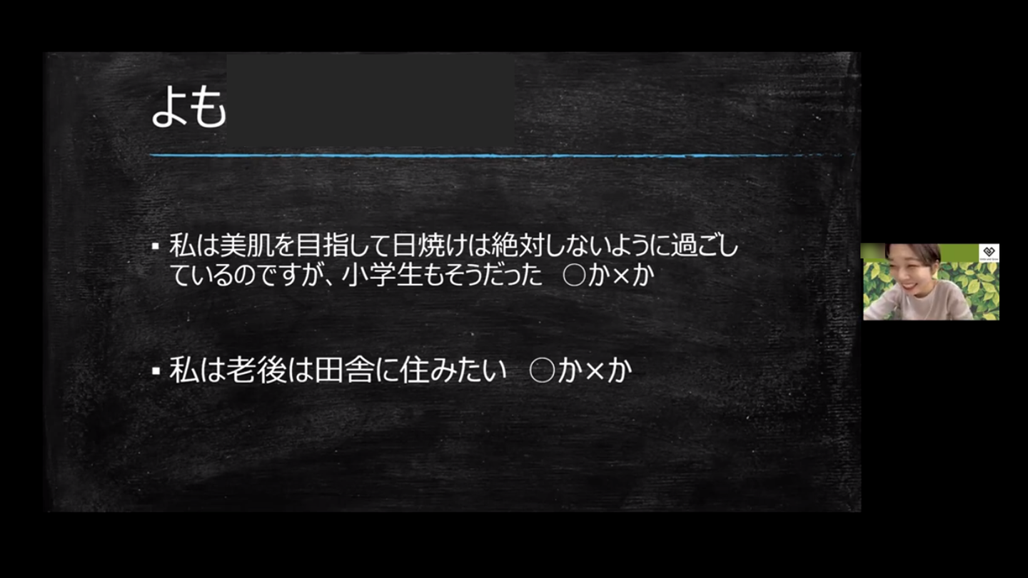 ○×クイズ一つでもその人の個性が出るようにつくられていて、さらにお互いのことを知ることができたと思います。