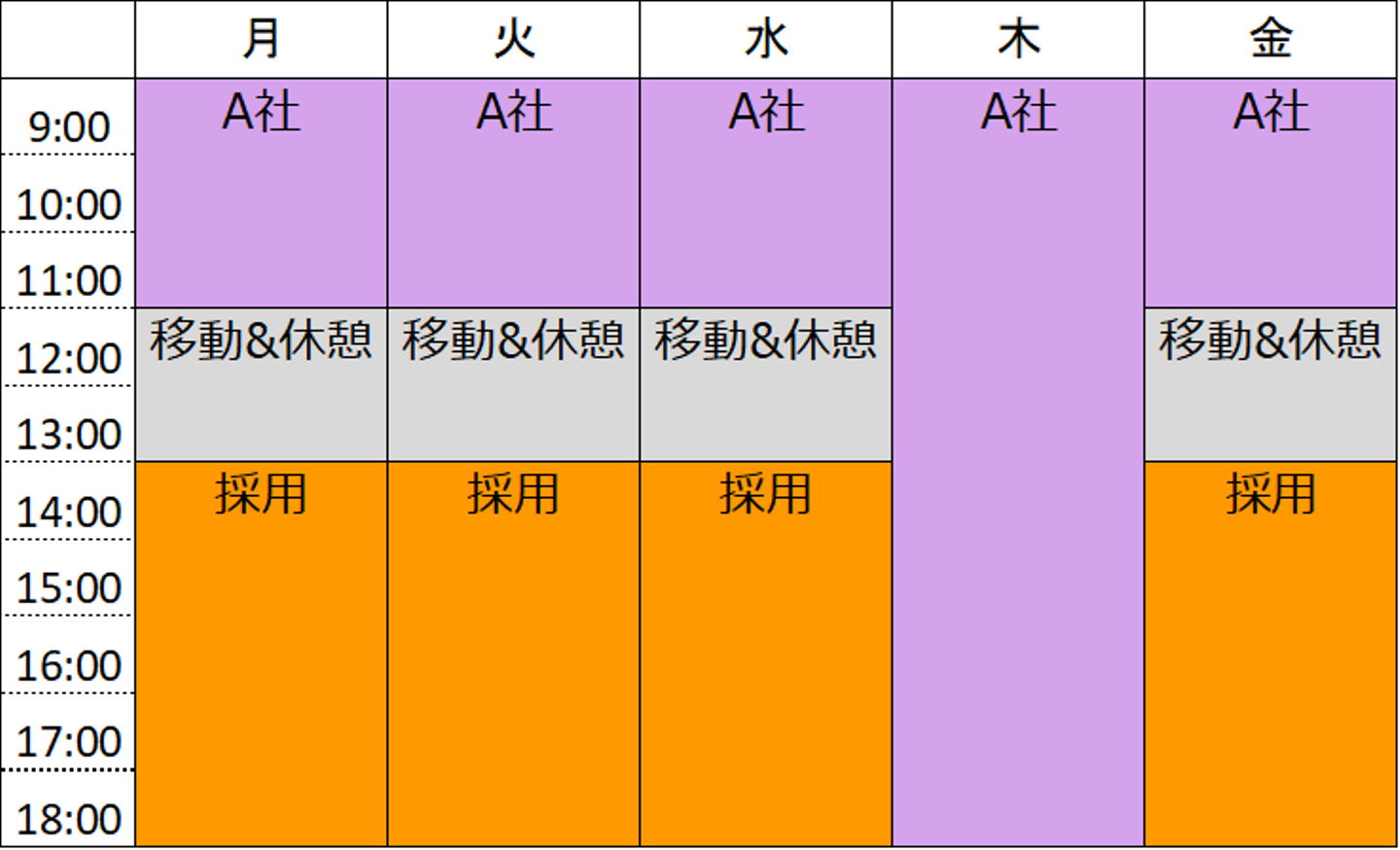 ▼採用とシェアード社員を兼務していたときのスケジュール