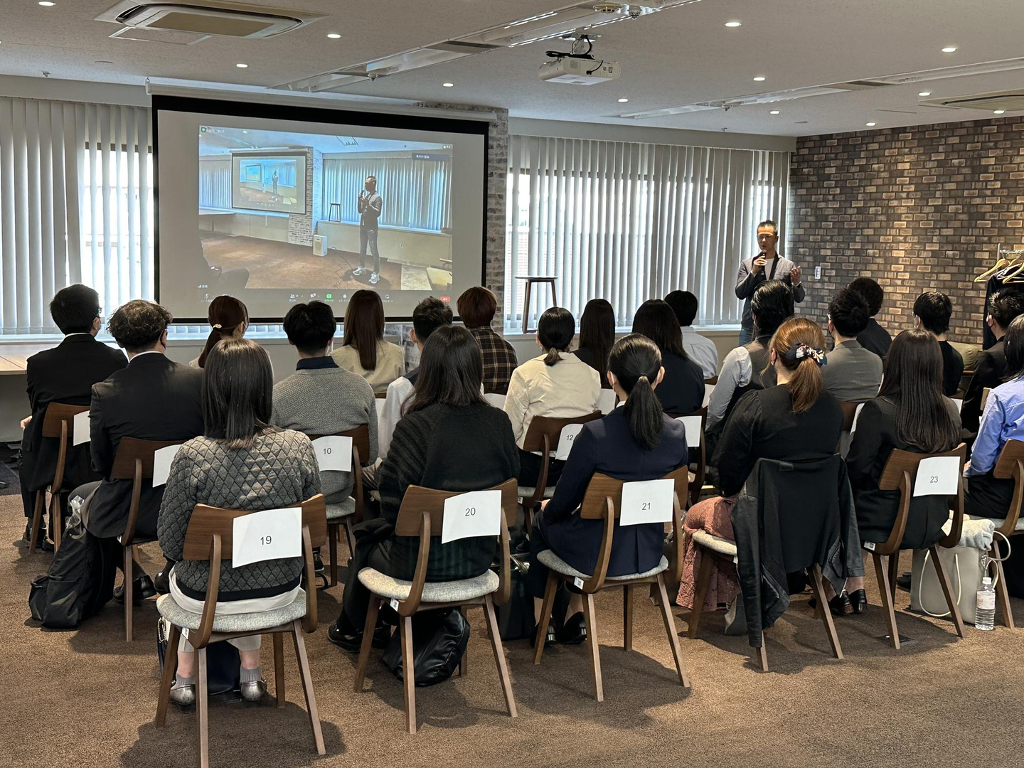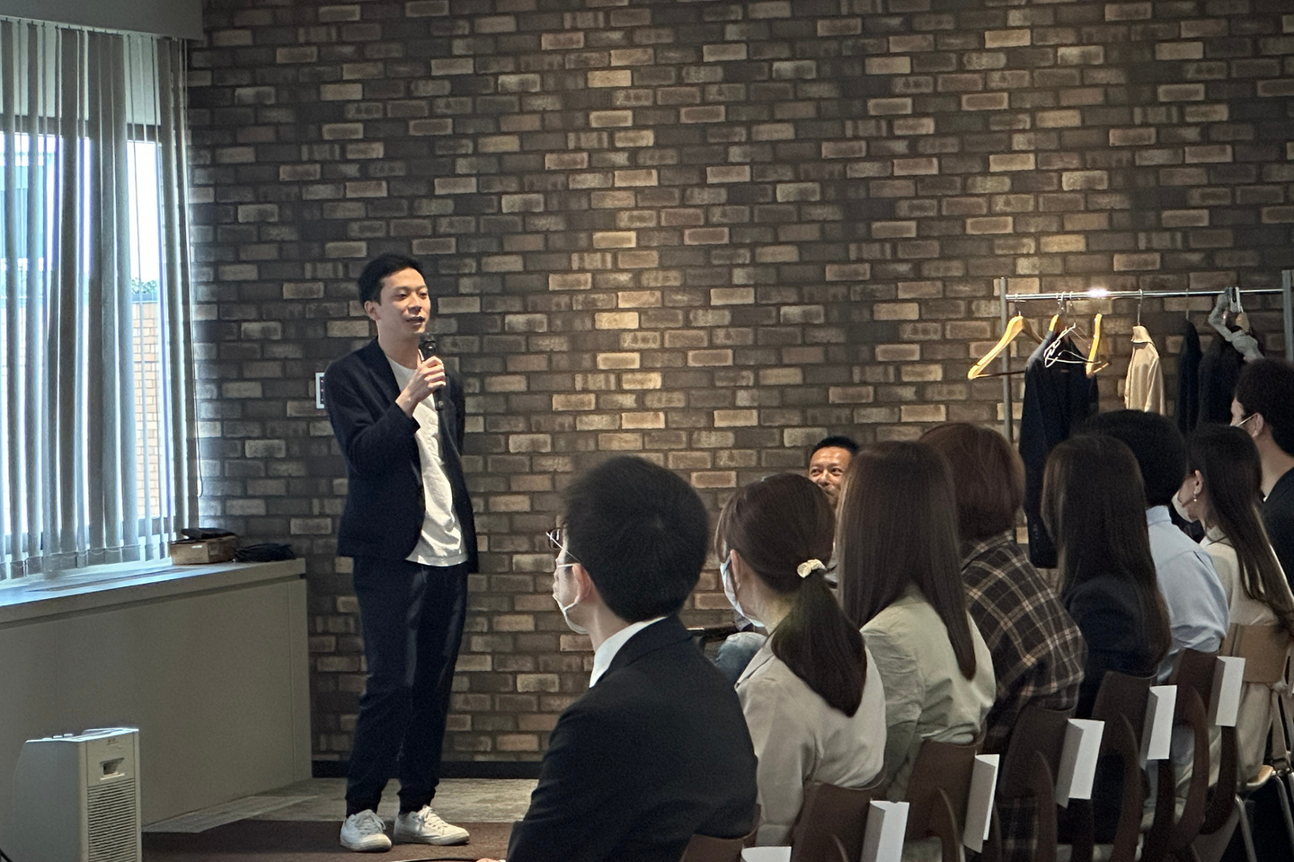 多くの新入社員を前にしてうれしかったのか普段より話が長かったです(笑)
