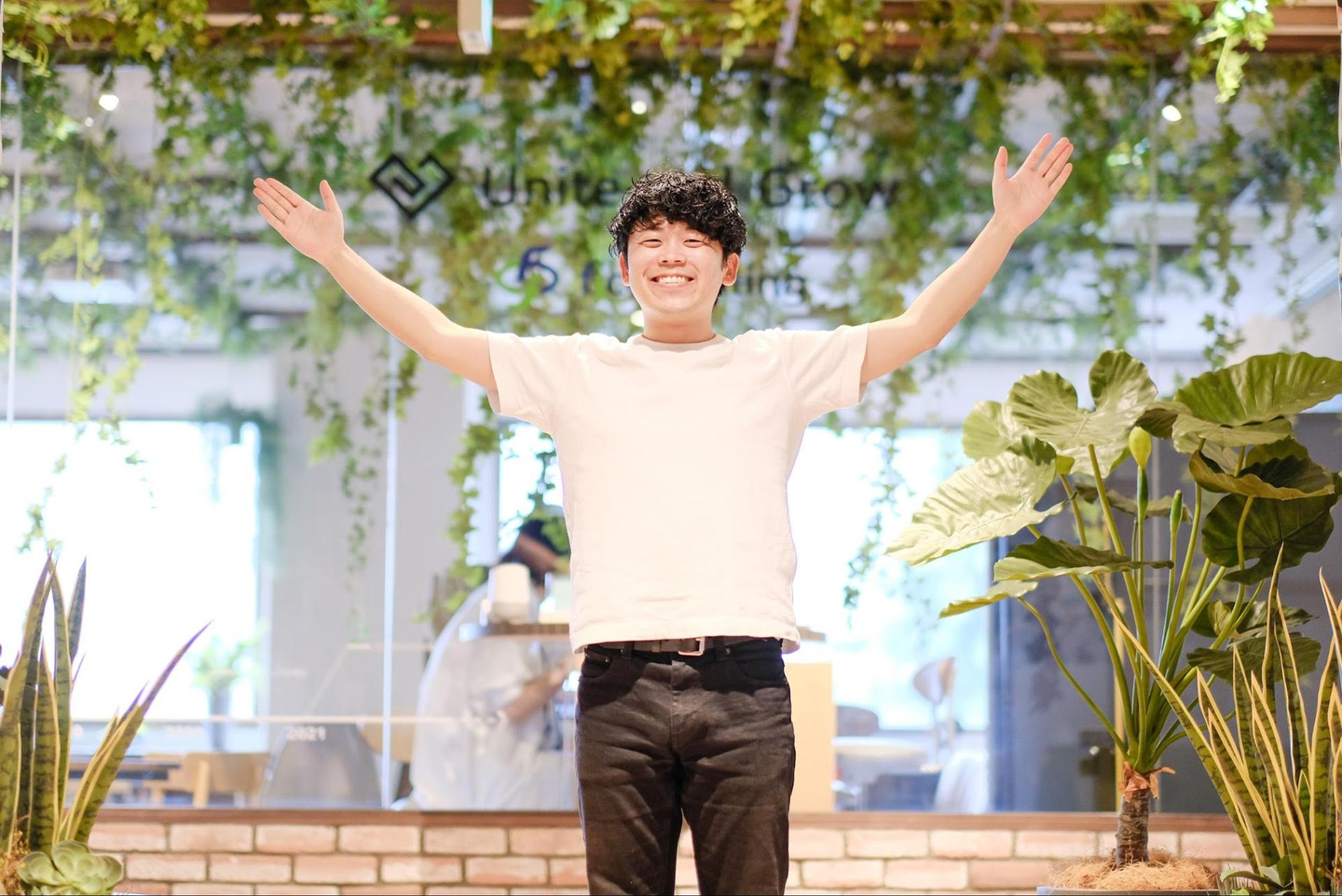 はい、よろしくお願いします!2021年11月入社のカミンです。僕はサッカー王国静岡で生まれ育ち、創価大学法学部国際平和・外交コースへの進学を機に上京しました。学生時代は短期・長期あわせて3カ国へ留学。新卒で入社した都内の留学エージェントでは営業職を経験し、初めての転職でUGに入社しました。これまでシェアード社員として6社のお客様を担当し、入社当初からUGアカデミーの運営にも携わっています。