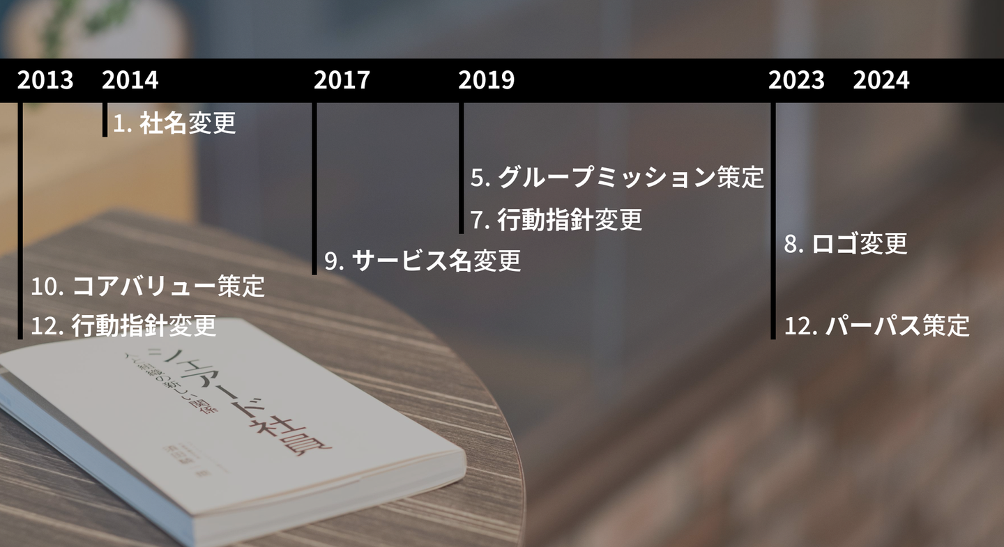 ↑直近10年の間に全社員で話し合って決めたこと年表