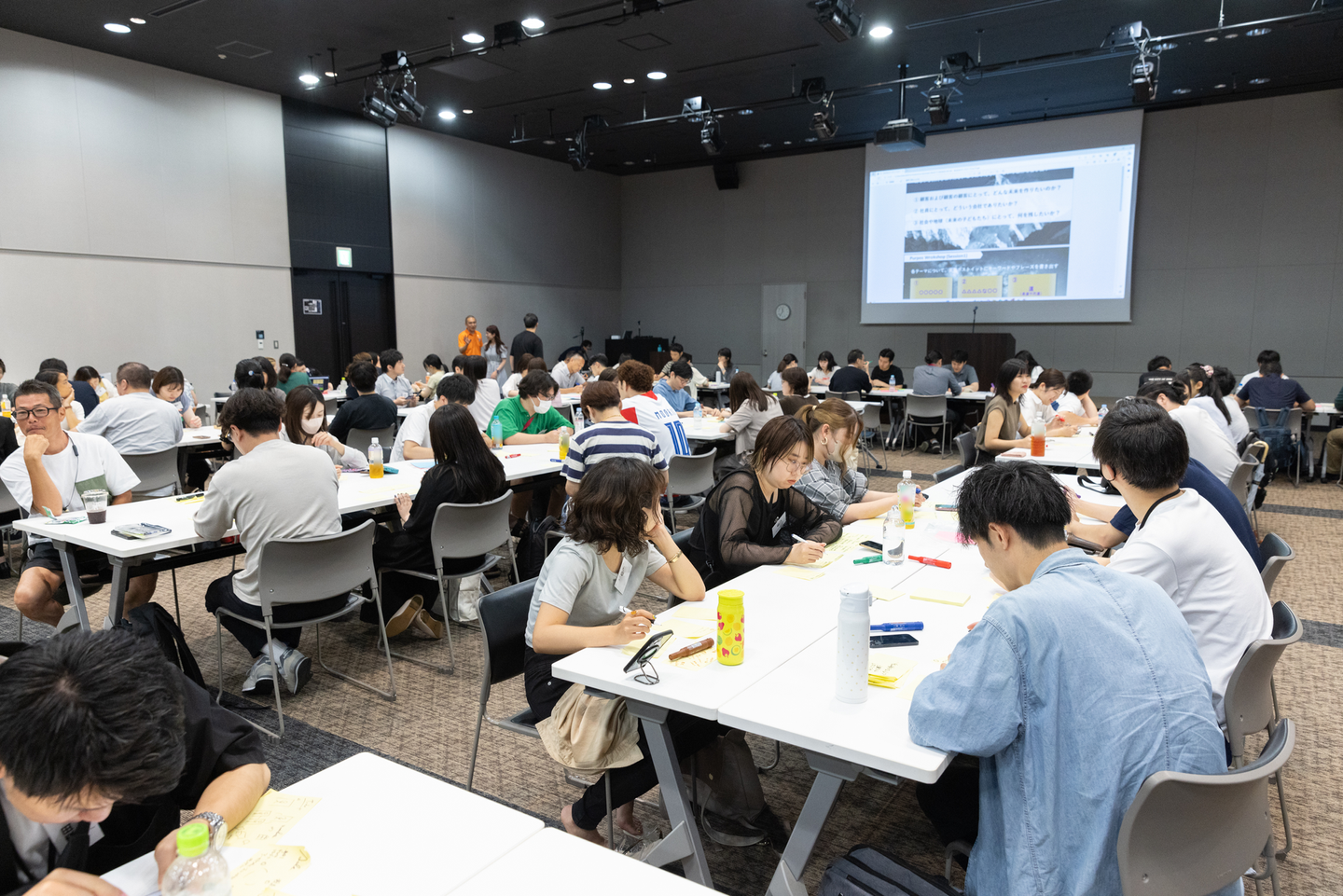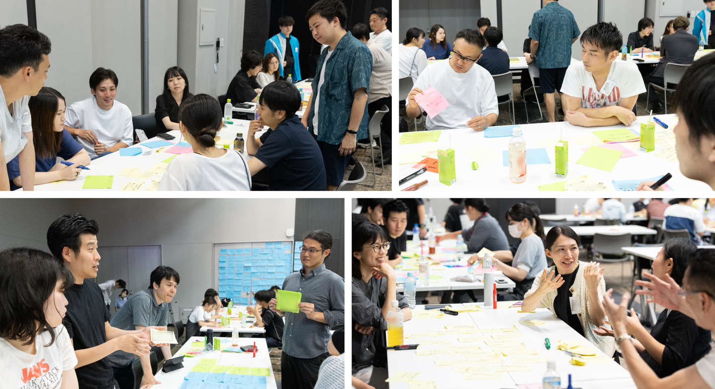 自分の考えを整理したあとは、年齢も社歴も経験もランダムなメンバーで構成されたテーブルごとに各々の考えをシェアしあいました。