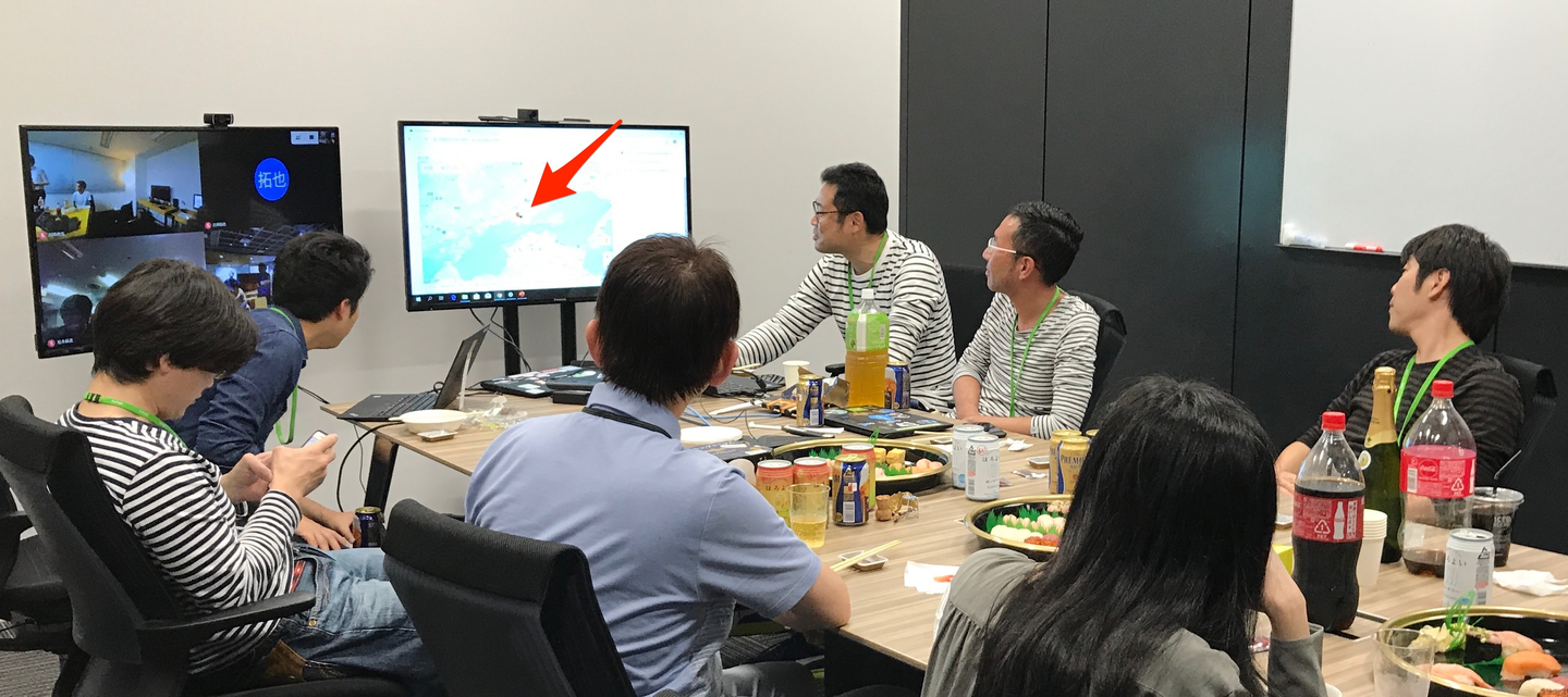 ※矢印の先の小さな点がAさんの場所。岡山を通過中で、残念ながらSushi Tech時間中に戻ってくることはできませんでした(余談)。