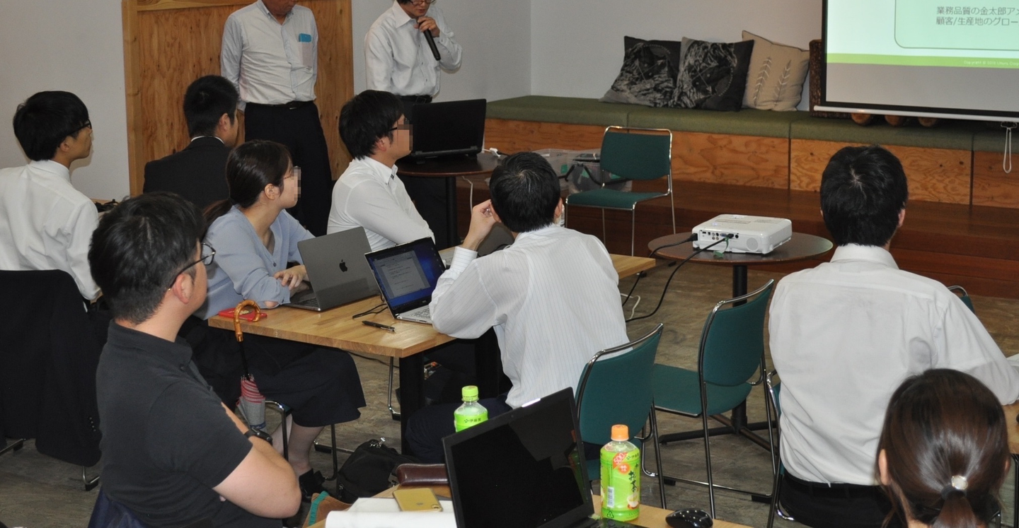 カリキュラム5回目のアイデアソンでの実践を踏まえ、各企業様に自社の課題を分析していただくことを宿題としていました。まずはご担当者様から、発表していただきます。
