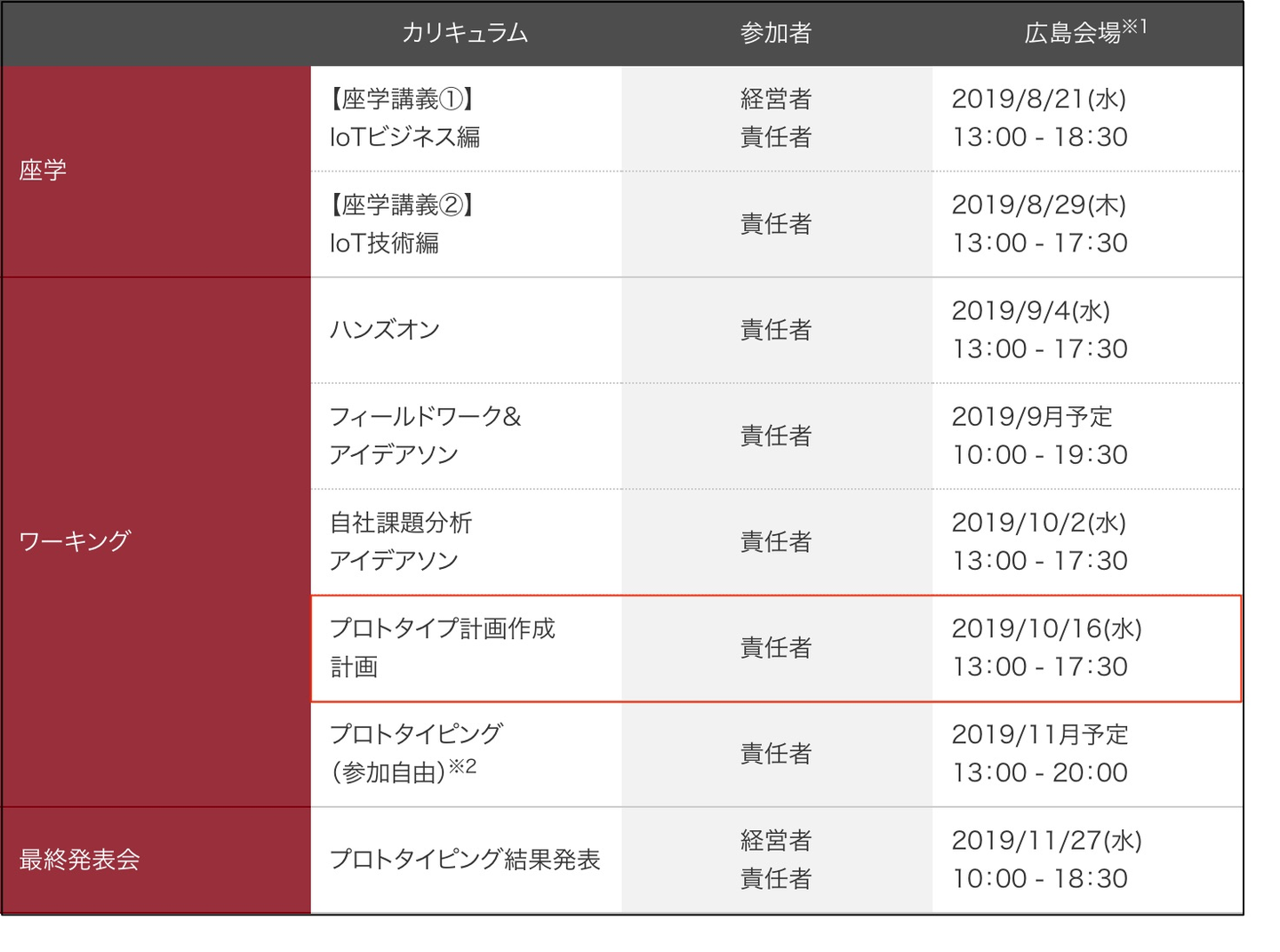各企業様は、これまでのカリキュラムを通してIoTの基礎を理解した上で、自社の課題分析を行いプロトタイピングを行う為の準備を整えていきます。 様々な業種・立場の方にお集まりいただいていますが、みなさまそれぞれの課題分析の結果からビジョンの整理を行い、ワークシートを使ってロードマップや実行計画を作成していきます。