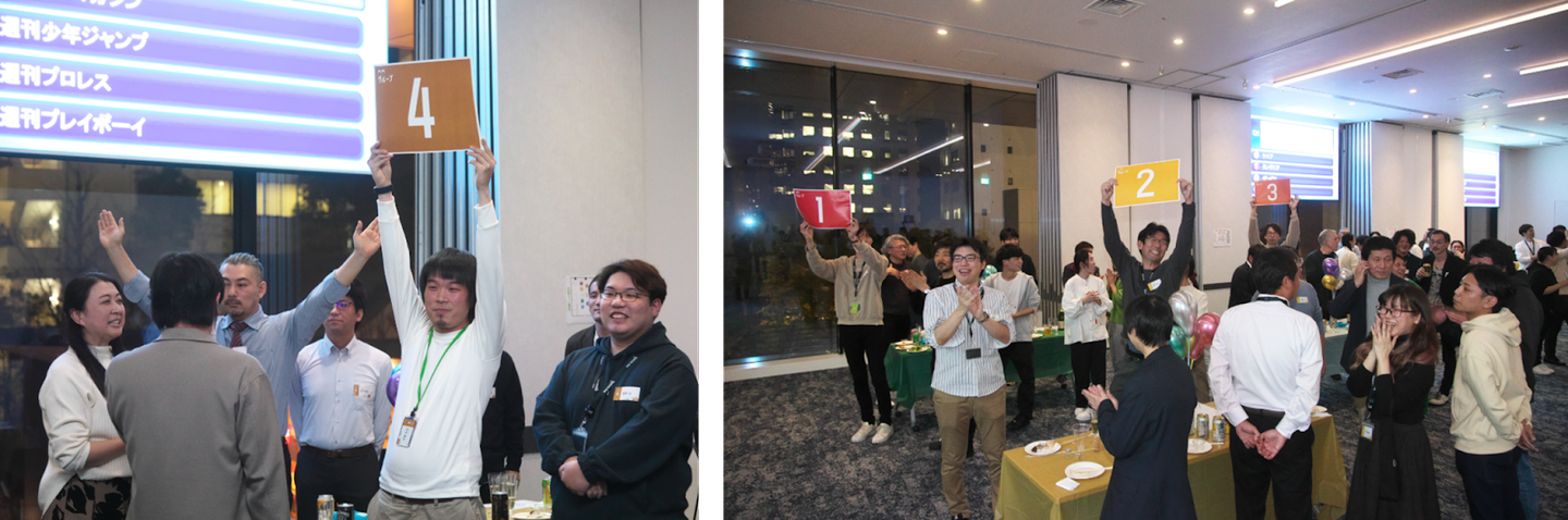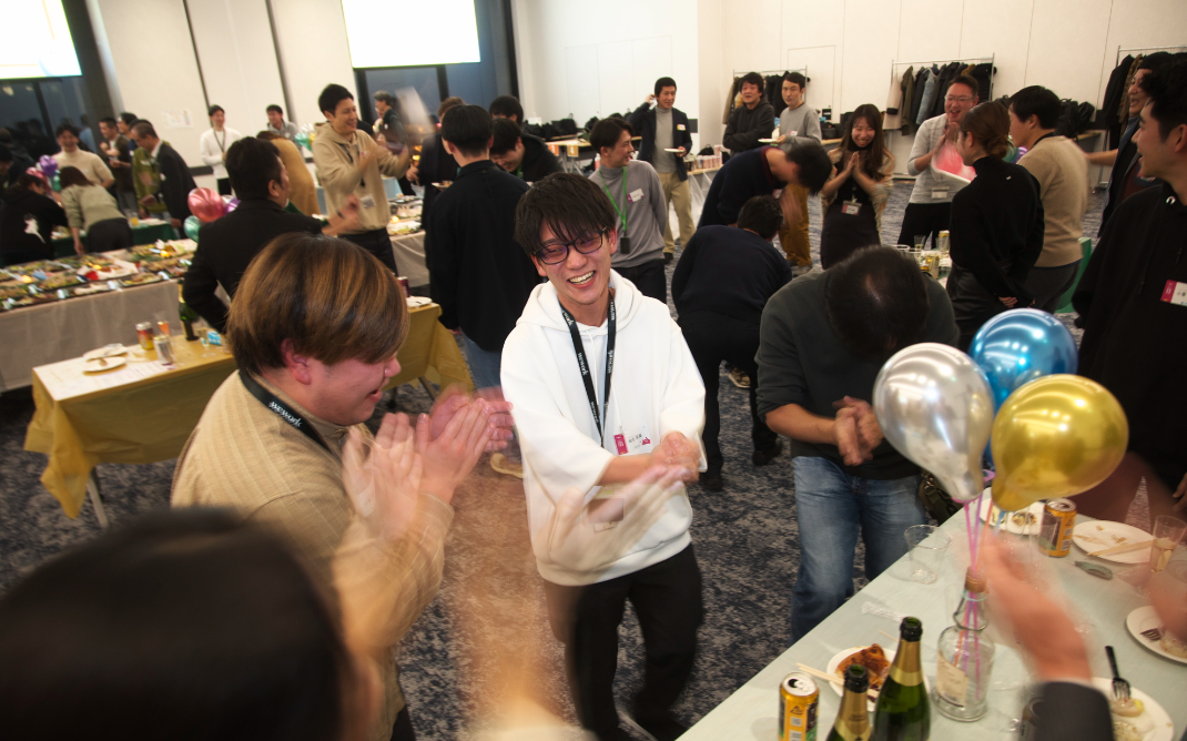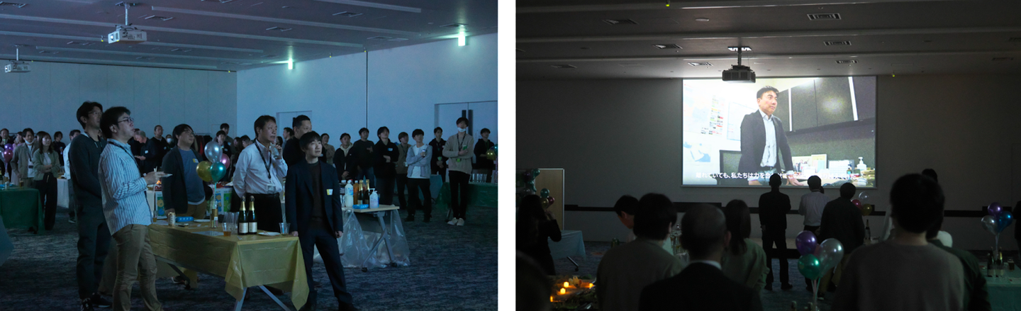 今回の忘年会は、各部署から有志が集まり、日々の業務の合間を縫って動画制作、デザイン、会場装飾、コンテンツ企画、飲食手配、司会、運営、予算管理など準備してきました。