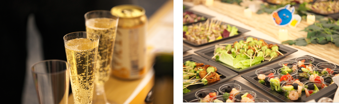 会場には、コーポレート部門の和南城さん・田神さんが厳選した、こだわりのオードブルが並びました。