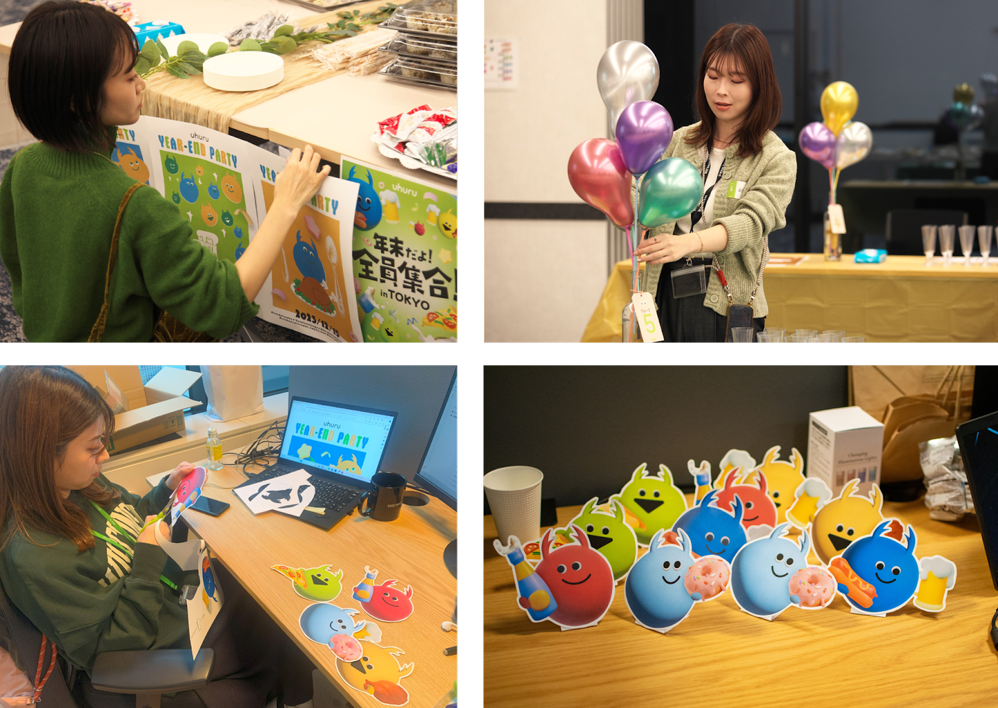 装飾物をデザインしていく中で、ウフルのロゴをモチーフにした可愛いキャラクターたちも生まれました。社員からは「グッズ化してほしい」という声が多く集まるほど大好評でした。