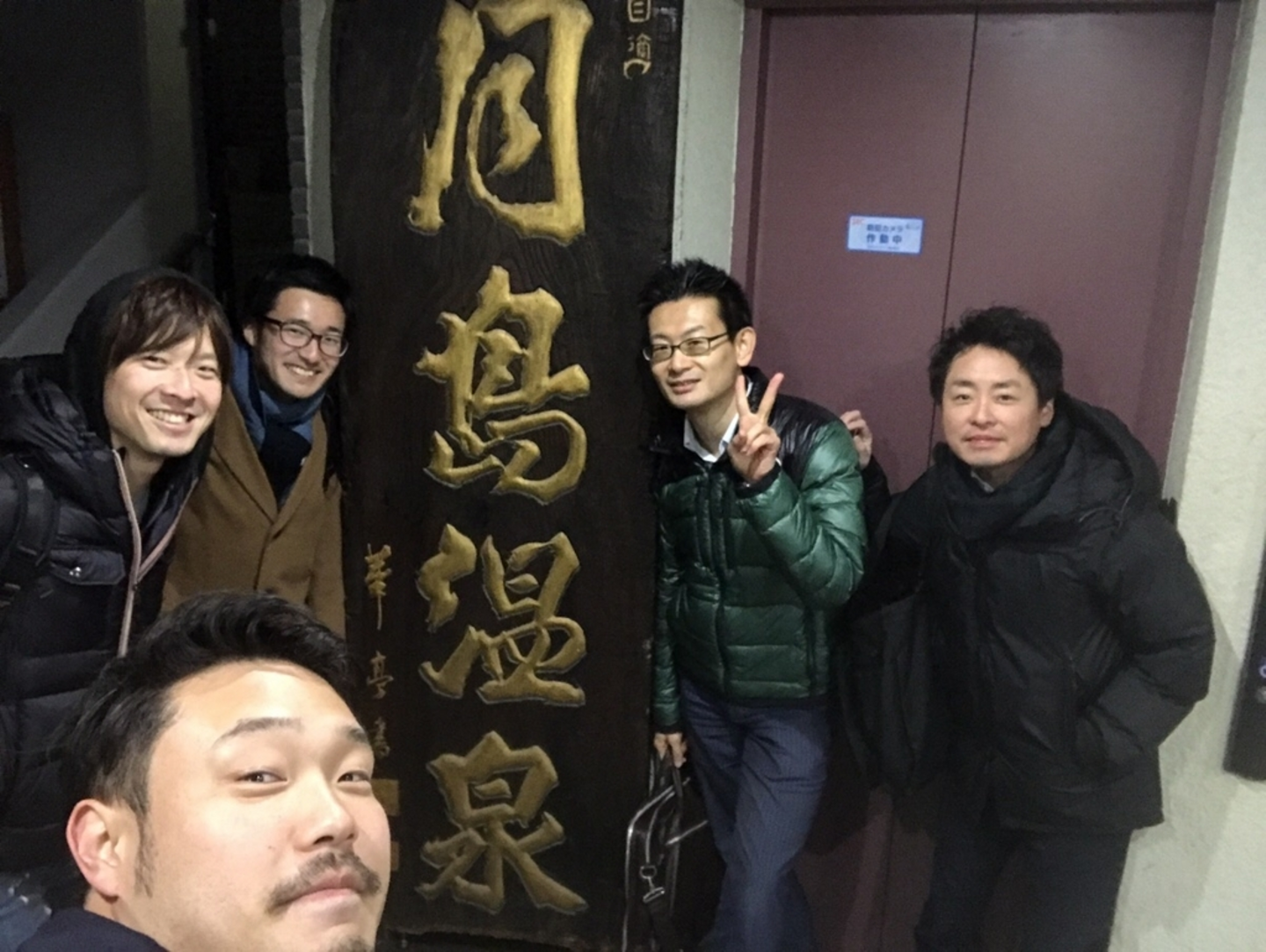 『先輩社員と飲みに行く(のみゅーんもOK)』に参加をした河本くん(右から二番目)。一番右の取締役の長屋も新卒の様な笑顔です♪