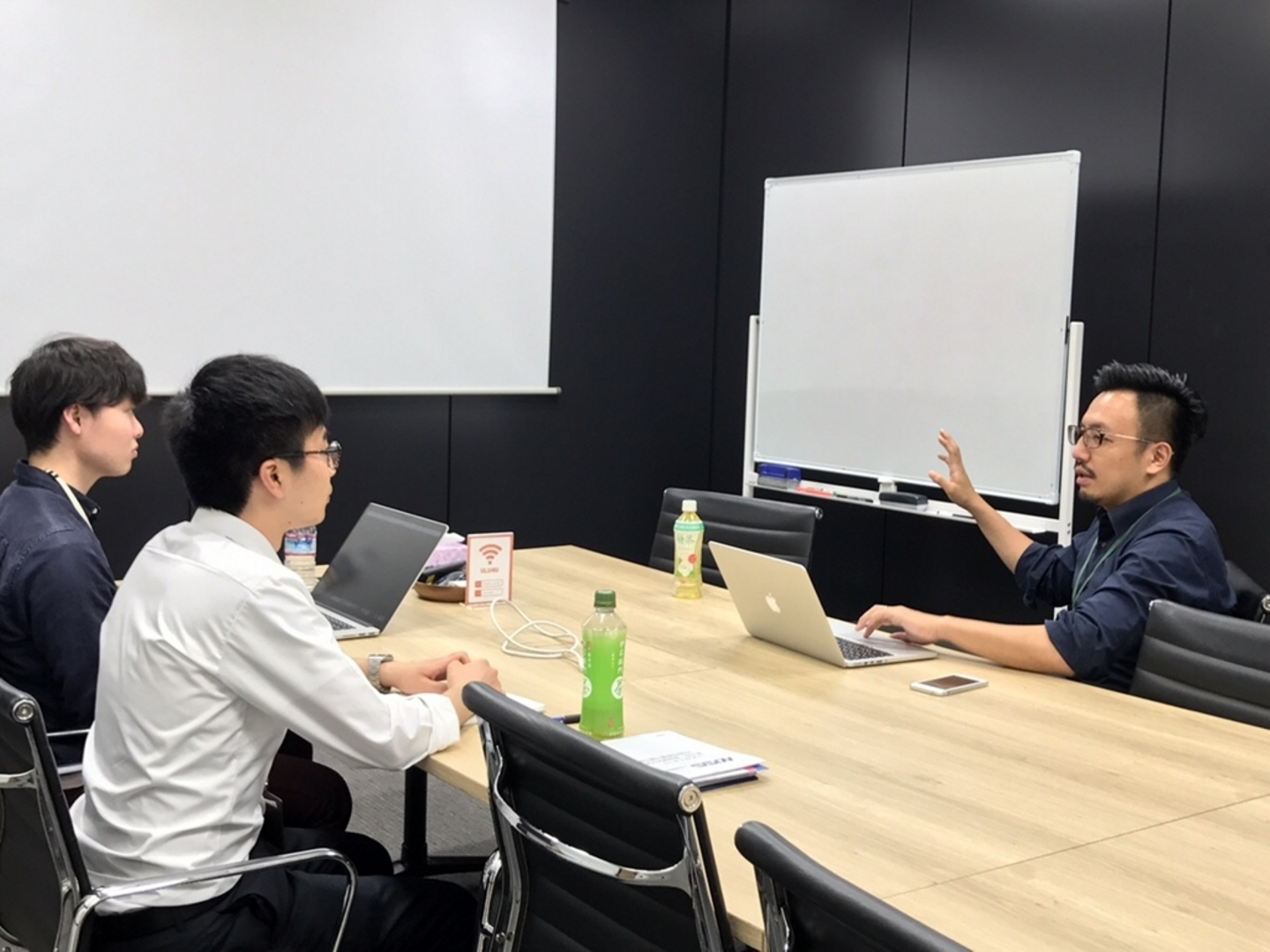『管理本部一日体験』はこんな感じです。管理本部の近藤と塚越から、うるるの財務や経理についてレクチャーを受けてます。大学でも学べない実践的な内容ですね。