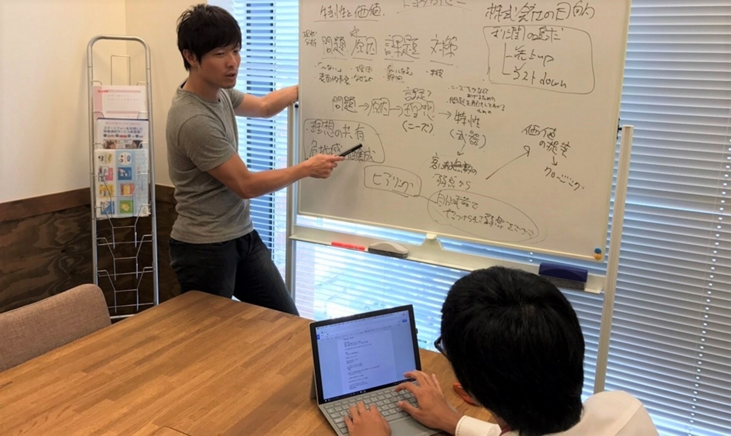 『小林の営業講習会を受講』はこんな感じ。後ろ姿の吉川くんがメチャクチャ熱心に内容を吸収してくれました。